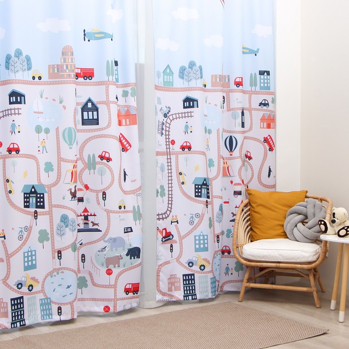 Шторы портьерные «Этель. Город», 145×260 см, 2 шт., габардин