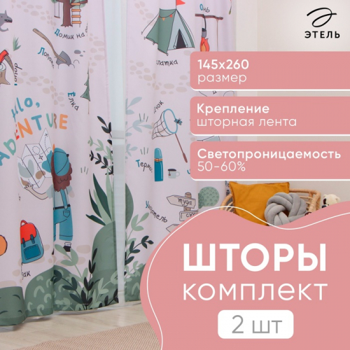 Шторы портьерные «Этель» Hello, adventure, 145×260 см, 2 шт., 140 г/м²