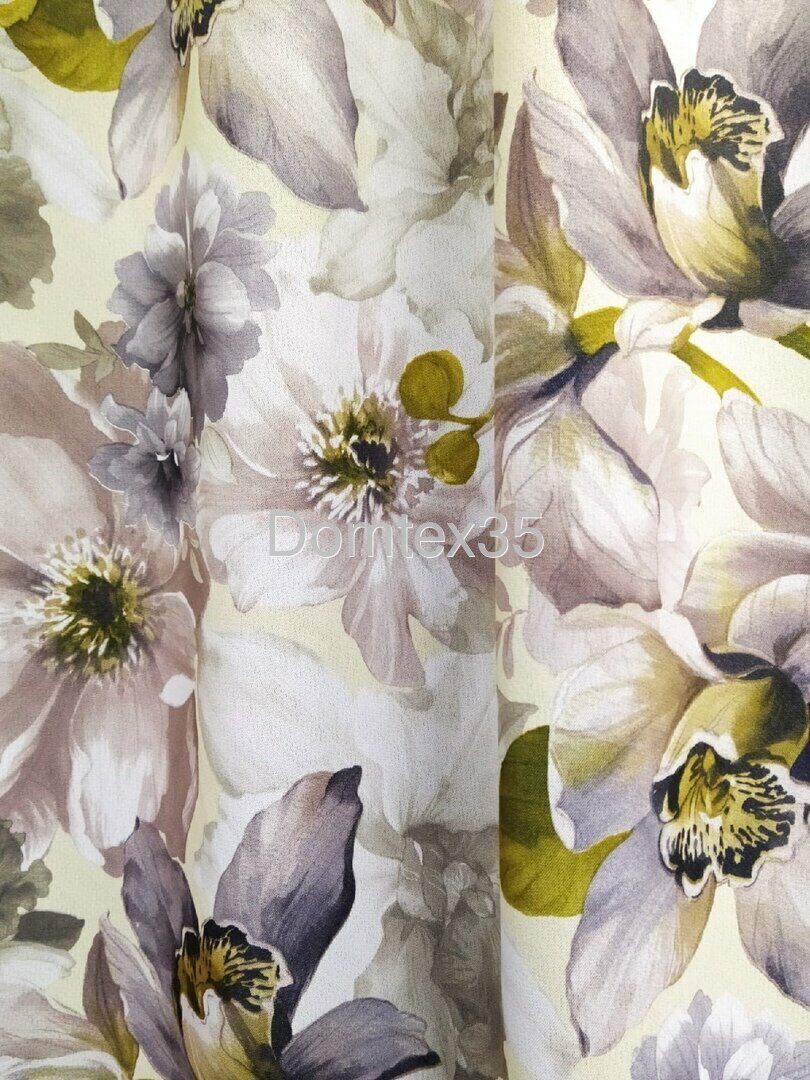 Комплект скомбинирован из рогожки блэкаут и портьеры с фотопечатью Цветы