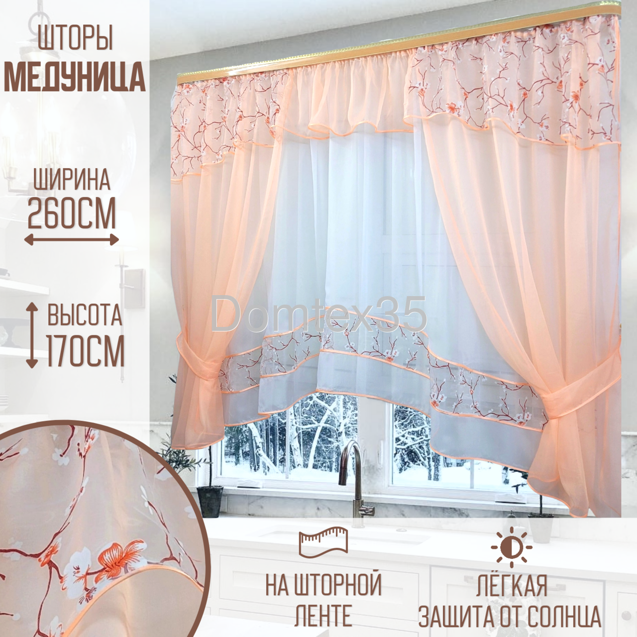 Легкая и воздушная кухонная штора "Медуница" - очень оригинальное и яркое украшение кухонного окна, которое непременно придаст Вашему интерьеру настоящее летнее настроение.