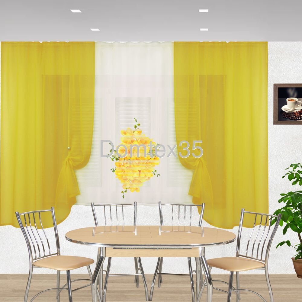 Кухонный комплект «Ника» отшивается на шторной тесьме из однотонной вуали.