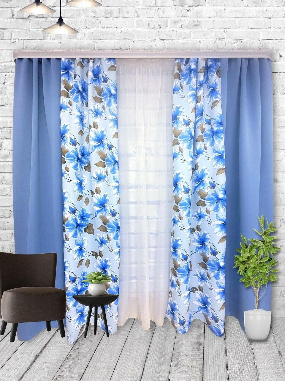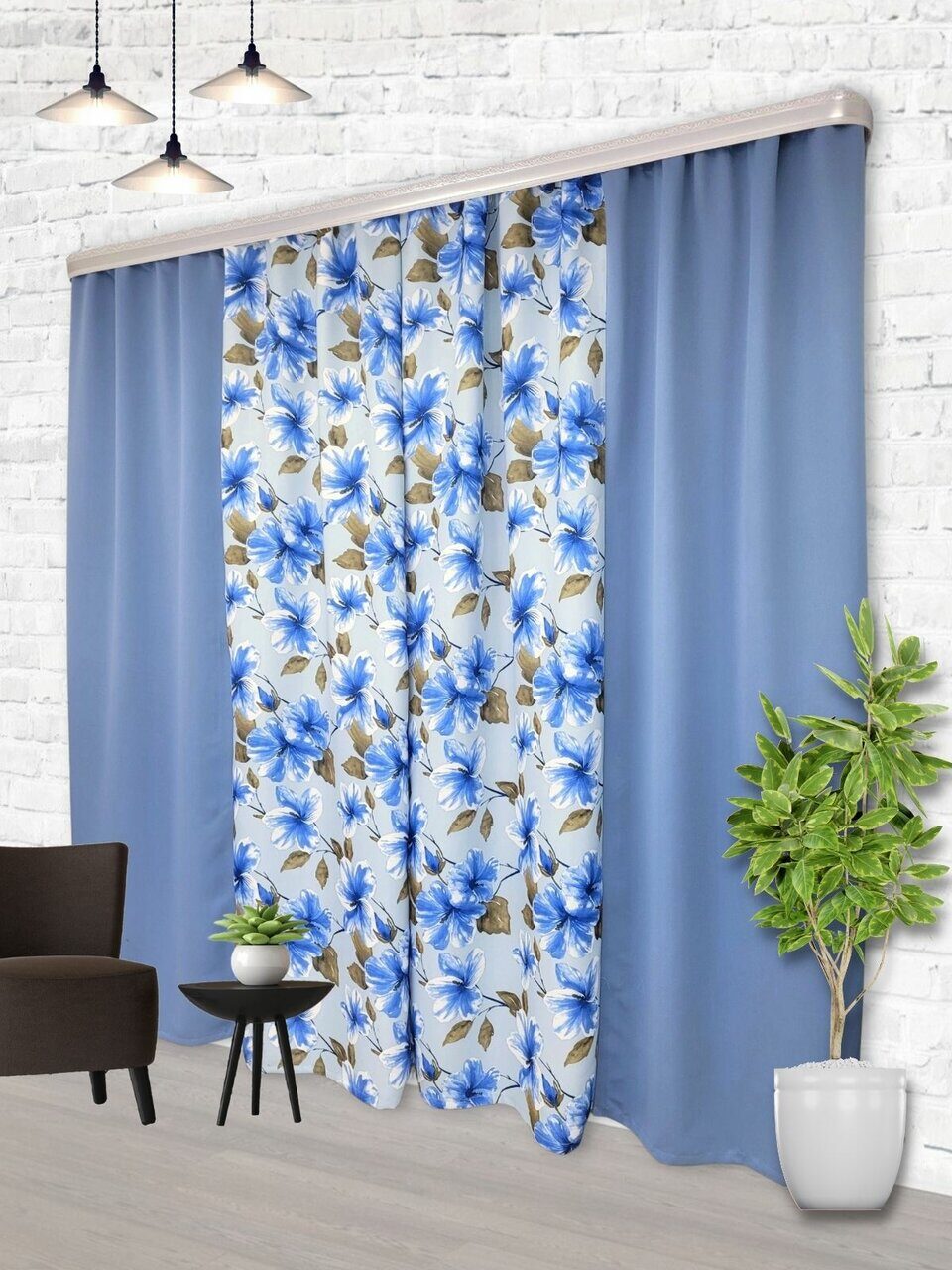 Комплект выполнен из плотной, светонепроницаемой портьерная ткани блэкаут с глянцевой, шелковистой текстурой. Модель скомбинирована из плотного однотонного софта премиум качества и блэкаута с цветочным принтом. Яркая, сочная расцветка штор несомненно освежит и украсит Ваше пространство и конечно же не останется не замеченной!
