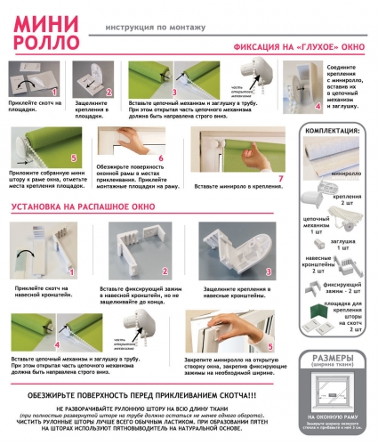 ✅ Миниролло (37-115см) крепятся без сверления. Монтажный комплект идет в комплекте: крепления без сверления: для открывающихся створок - при помощи клипс; для глухих - на 2-ий скотч. И тот и другой вид идет в комплекте ко всем мин