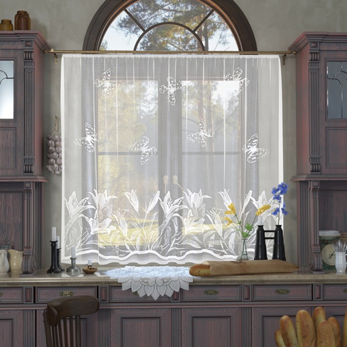 Тюль на кухню без шторной ленты 170×170 см, белая украсит помещение и обновит внешний вид кухни. Изящное цветочное оформление и невесомая фактура подчеркнут общий интерьер. Изделие пропускает естественный свет и воздух, что позволит ранним утром во время завтрака насладиться первыми лучами солнца и свежим ветерком.