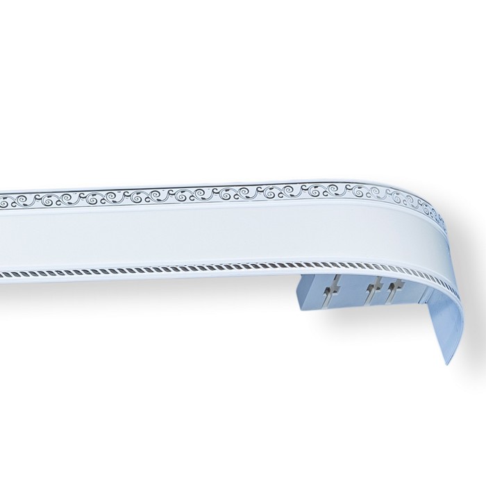 Карниз трёхрядный «Ультракомпакт. Есенин», 180 см, с декоративной планкой 7 см, цвет серебро/белый