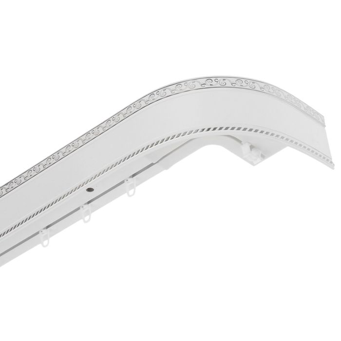 Карниз трёхрядный «Ультракомпакт. Есенин серебро», 320 см, с декоративной планкой 7 см, цвет белый