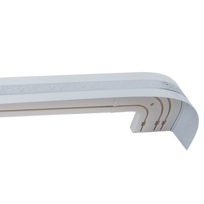 Карниз трёхрядный «Ультракомпакт. Грация», 180 см, с декоративной планкой 7 см, цвет серебро/белый