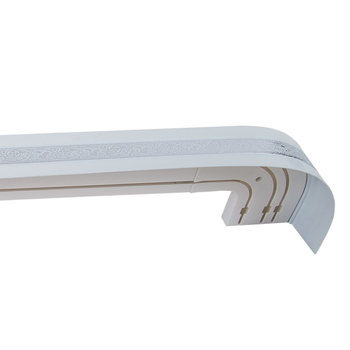 Карниз трёхрядный «Ультракомпакт. Грация», 300 см, с декоративной планкой 7 см, цвет серебро/белый
