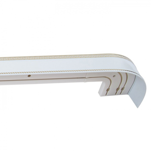 Карниз трёхрядный «Ультракомпакт. Меандр серебро», 200 см, с декоративной планкой 7 см, цвет белый
