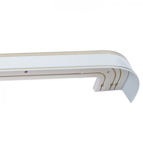 Карниз трёхрядный «Ультракомпакт. Меандр золото», 200 см, с декоративной планкой 7 см, цвет белый