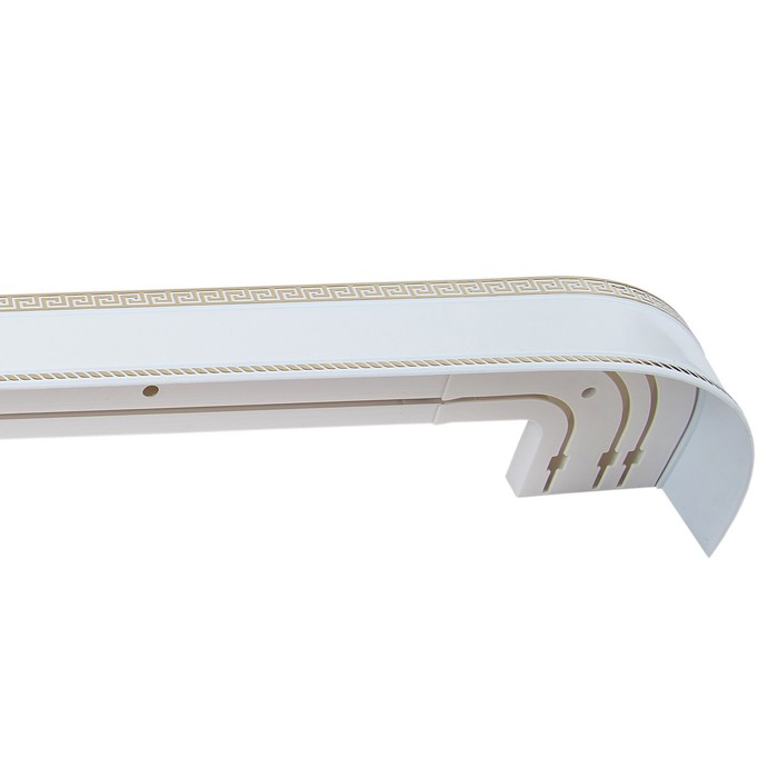 Карниз трёхрядный «Ультракомпакт. Меандр золото», 360 см, с декоративной планкой 7 см, цвет белый