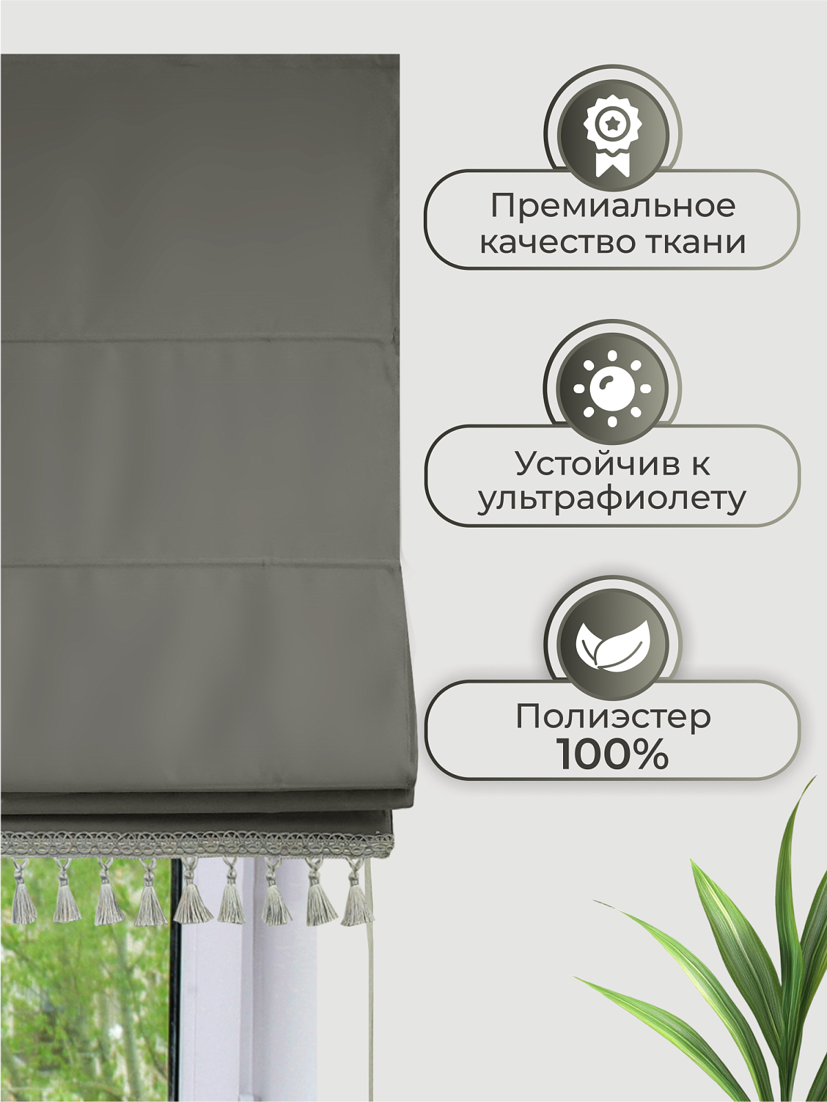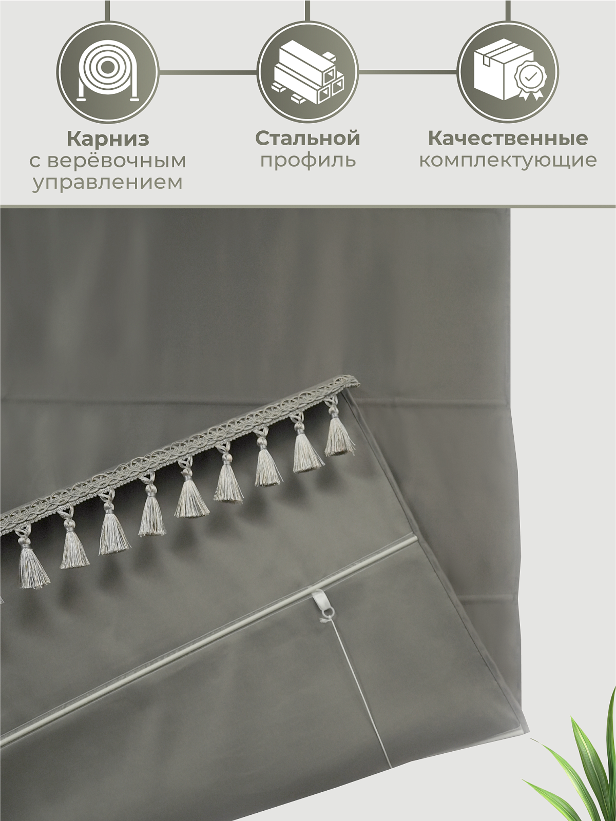 Римская штора из сатена с декоративной бахромой. Штора продается с карнизом, крепление к карнизу на липучку. Штору можно повесить на окно, на стену или к потолку. Комплект креплений в упаковке. Римская штора собирается крупными складками и прекрасно подходит для любого типа окон. Римские шторы, края которых хорошо обработаны и отделаны бахромой с кистями, представляют собой изысканный элемент декора, способный преобразить любое пространство. Их элегантный минимализм сочетается с функциональностью, обеспечивая контроль над освещением и приватностью.