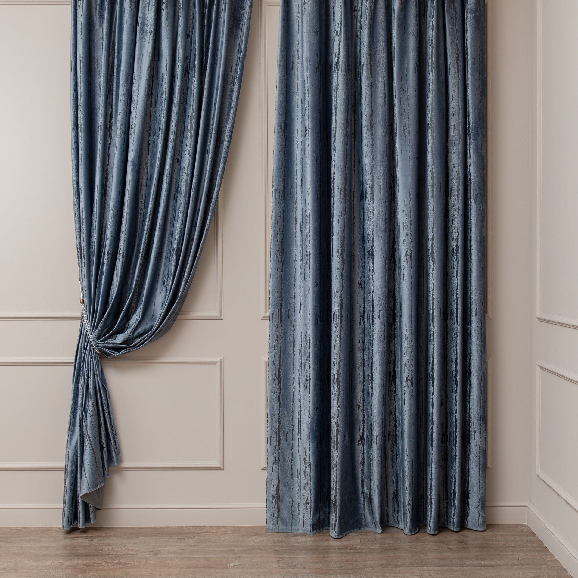 Портьера Бархат печать тиснение Melange AR Bergamo-01/300 PPech Barhat синий 300 см