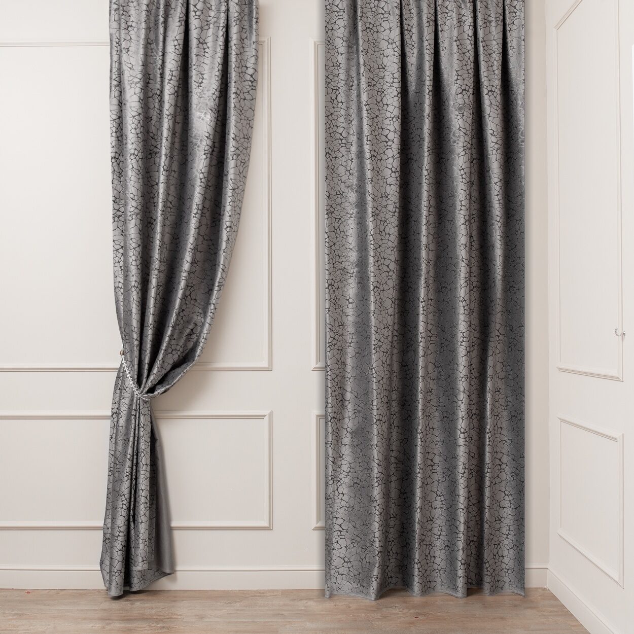 Портьера Бархат печать тиснение Melange AR Roche-03/300 P серый 300 см