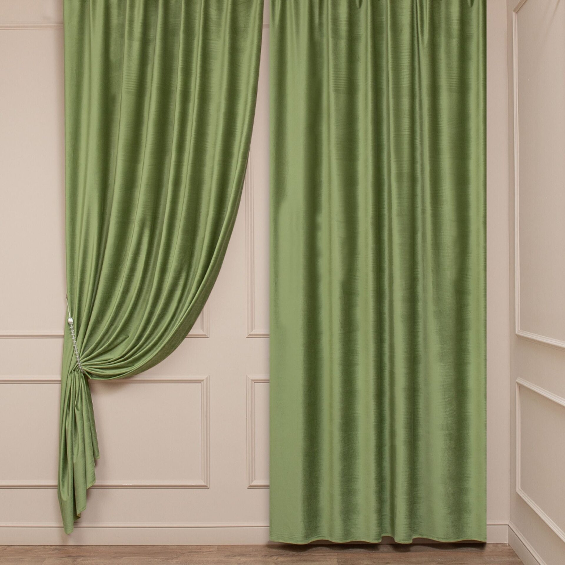 Портьера однотонная бархат Melange JL Bellissimo-26/300 PBarhat оливковый 300 см
