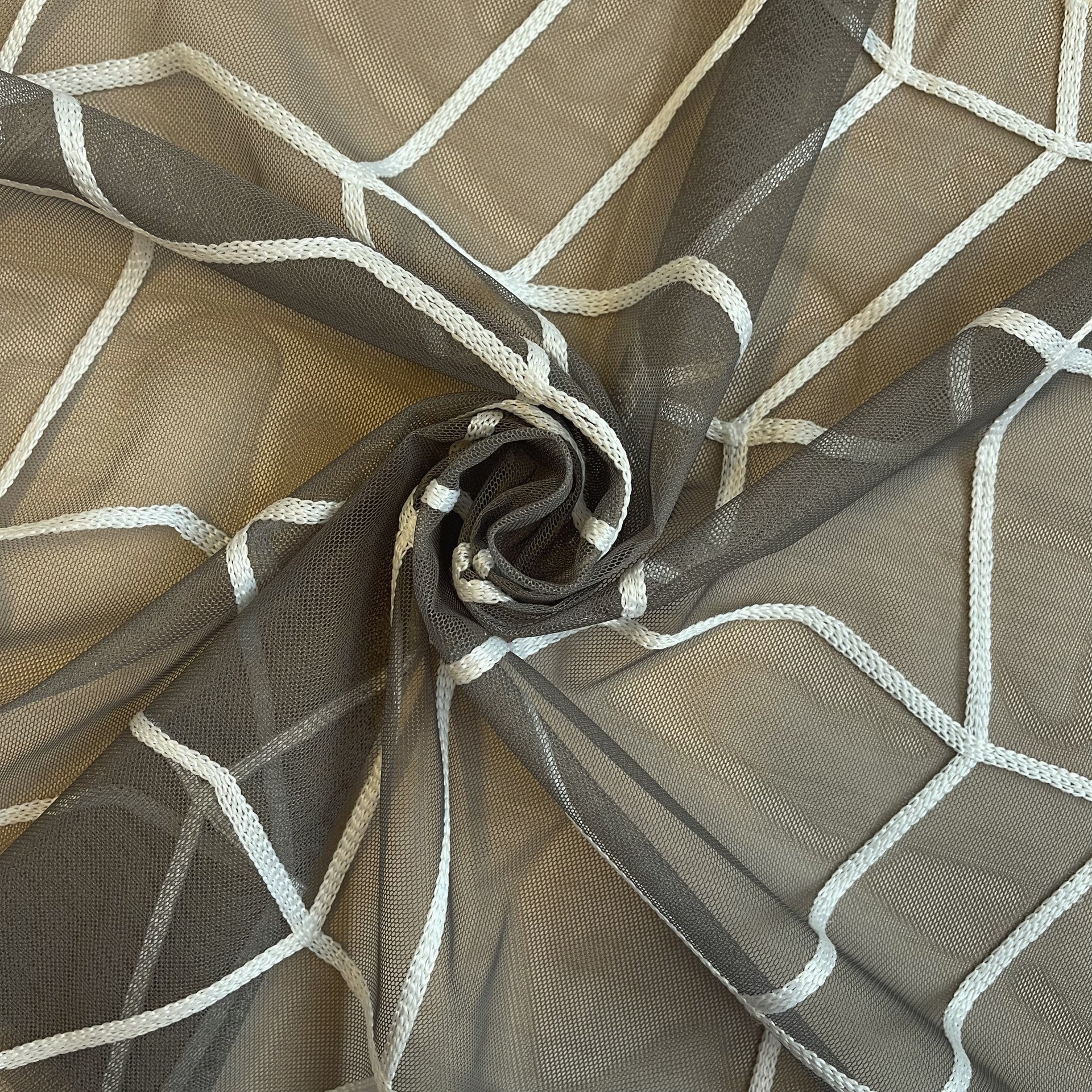 Сетка с вышивкой фентези геометрия S21114 коричнево-серый 300 см