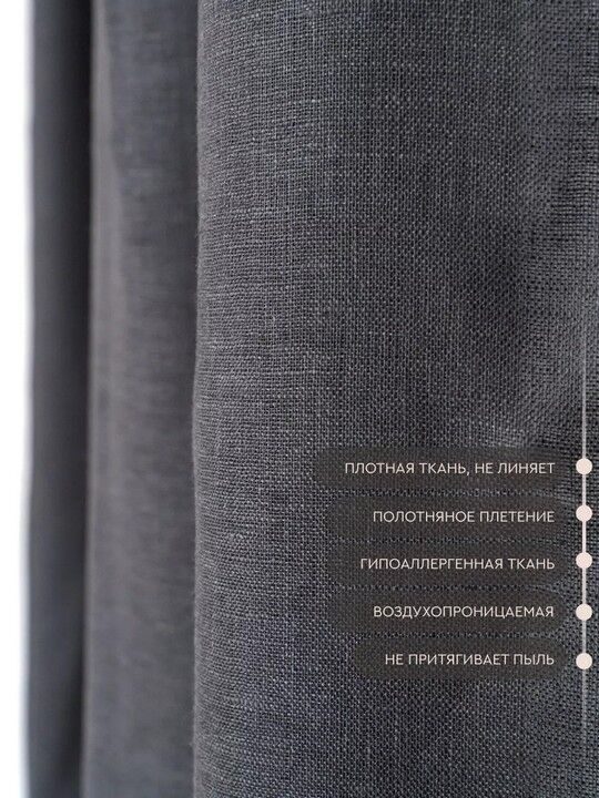 Штора гладкокраш. «Серый жемчуг» тесьма лен 100% 145*270 см.