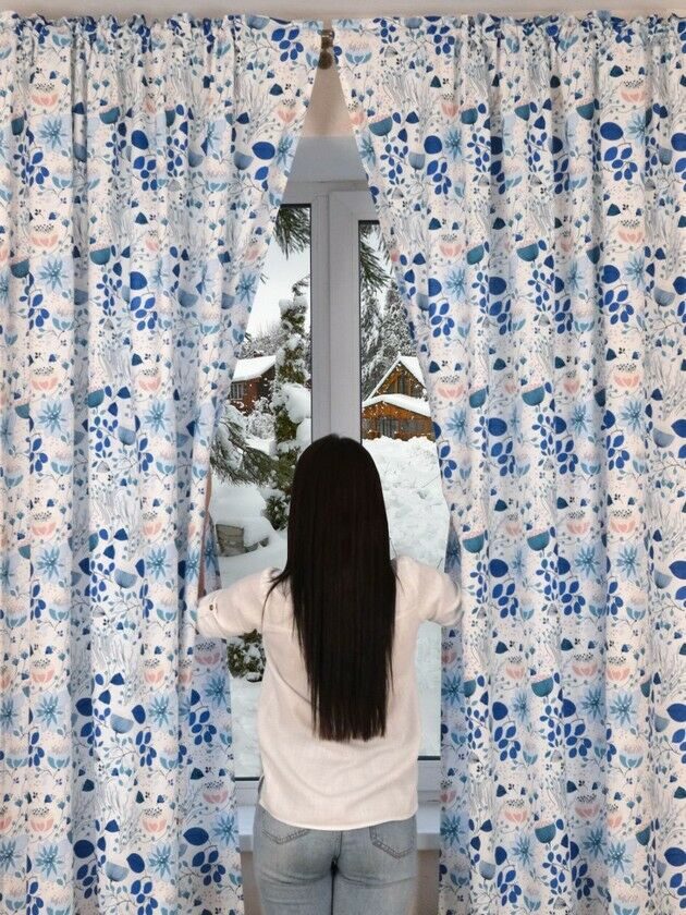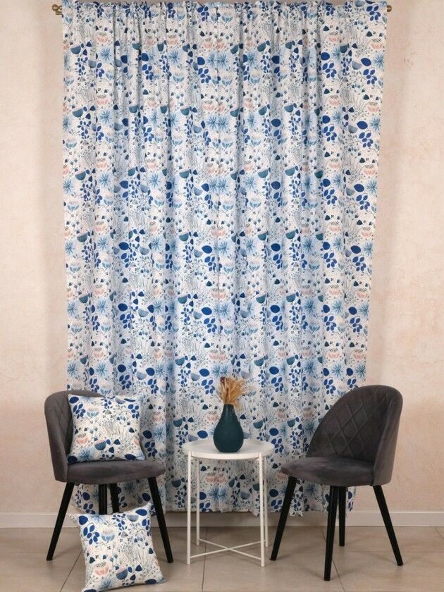 Штора набив. «Голубой лотос» тесьма п/лен 145*260 см.
