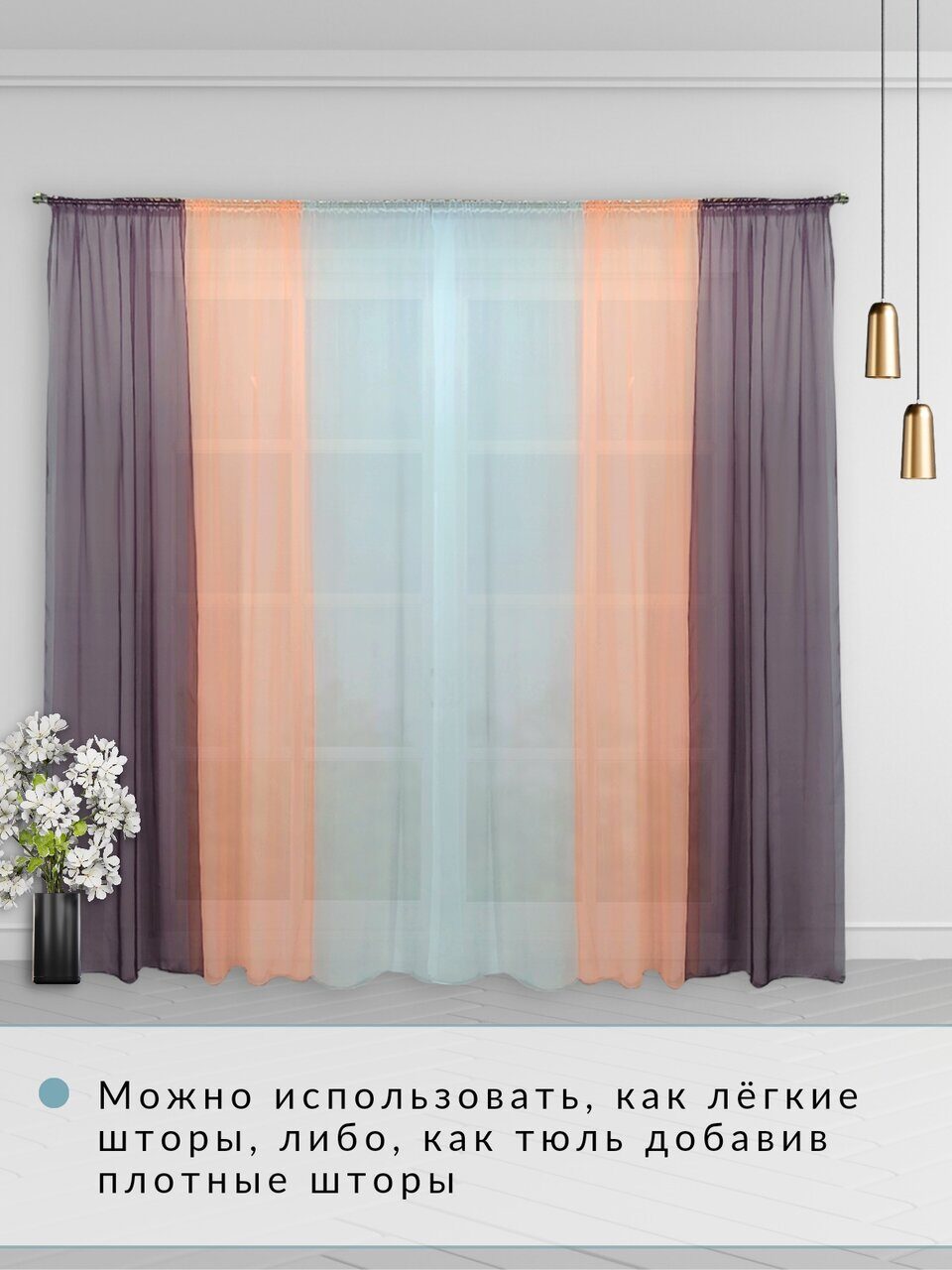Комплект для зала из мягкой однотонной вуали, скомбинированный из трех цветов.