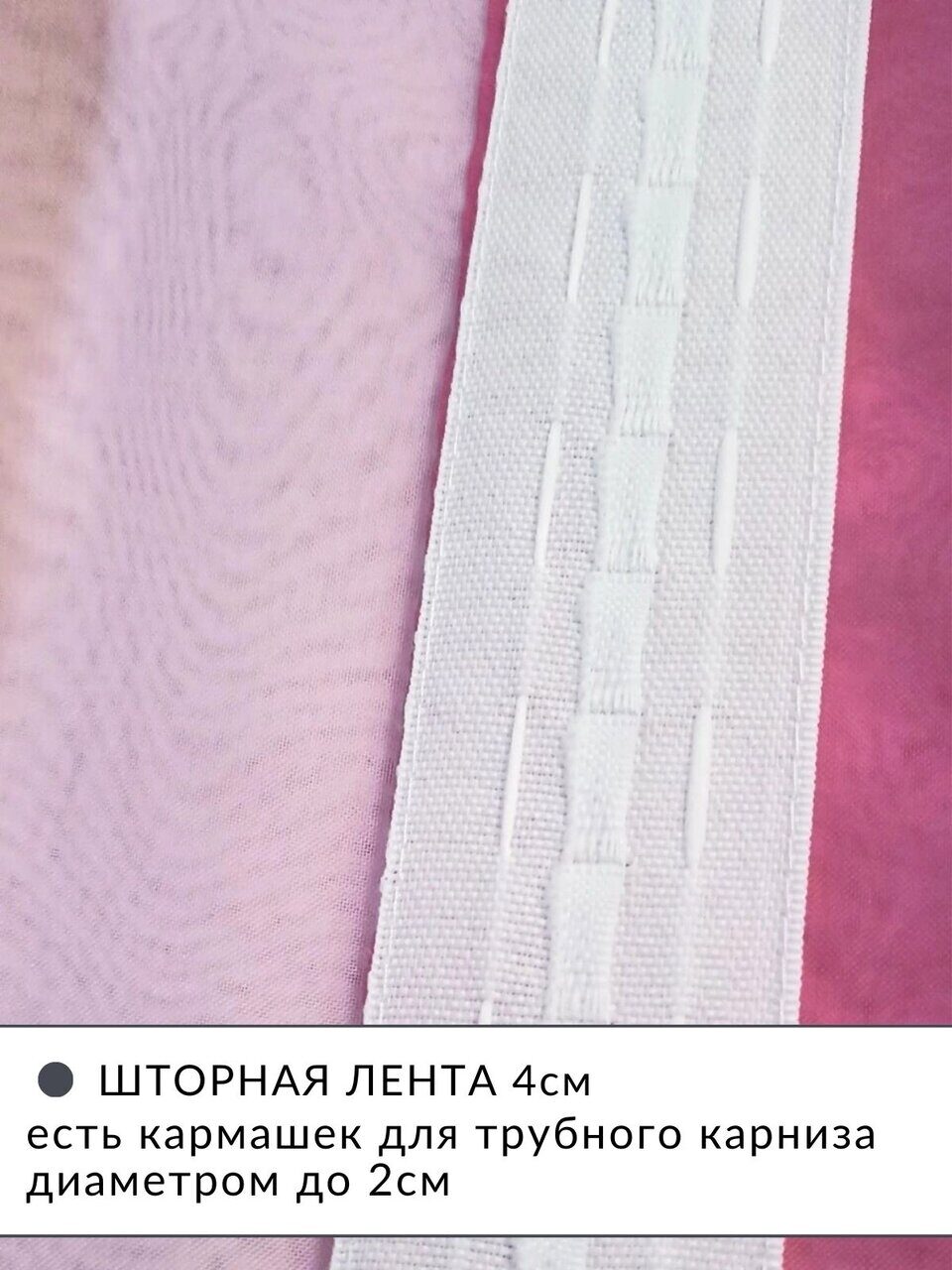 Тип крепления - шторная лента, стягивая которую, создаются качественные и аккуратные складки. Подойдет для любого вида карниза с крючками и зажимами.