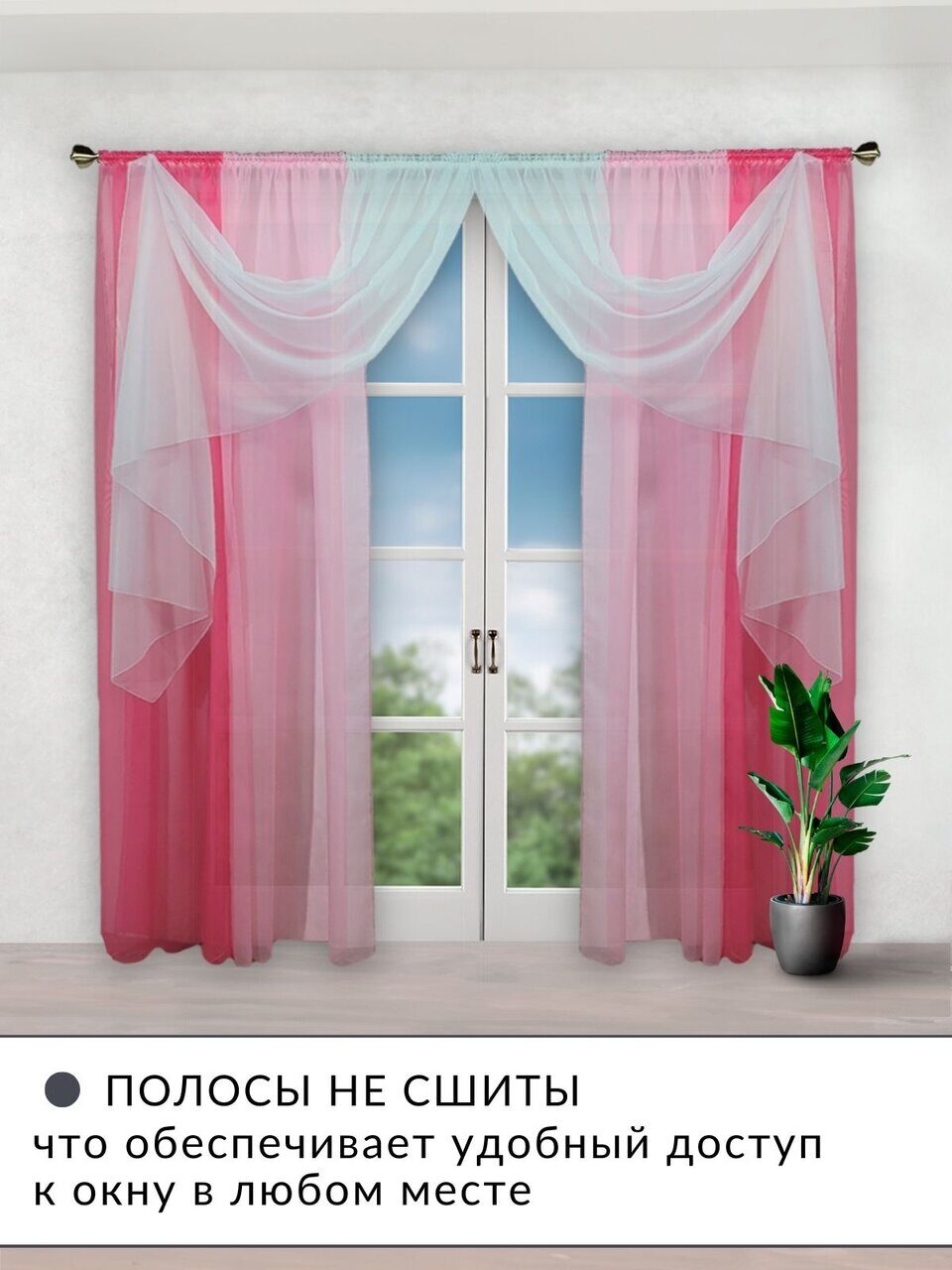 Шторы для комнаты комплект тюль вуаль "Радуга" фуксия/розовый