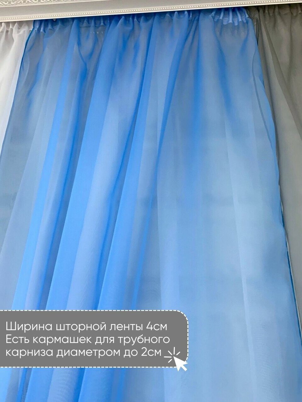 Благодаря большой ширине комплекта, при стягивании шторной ленты, модель на окне выглядит очень легкой и воздушной.