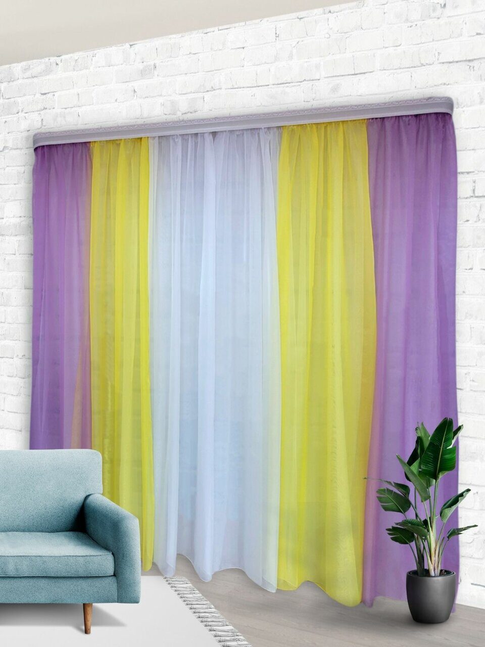 Комплект для зала из мягкой однотонной вуали, скомбинированный из трех цветов.