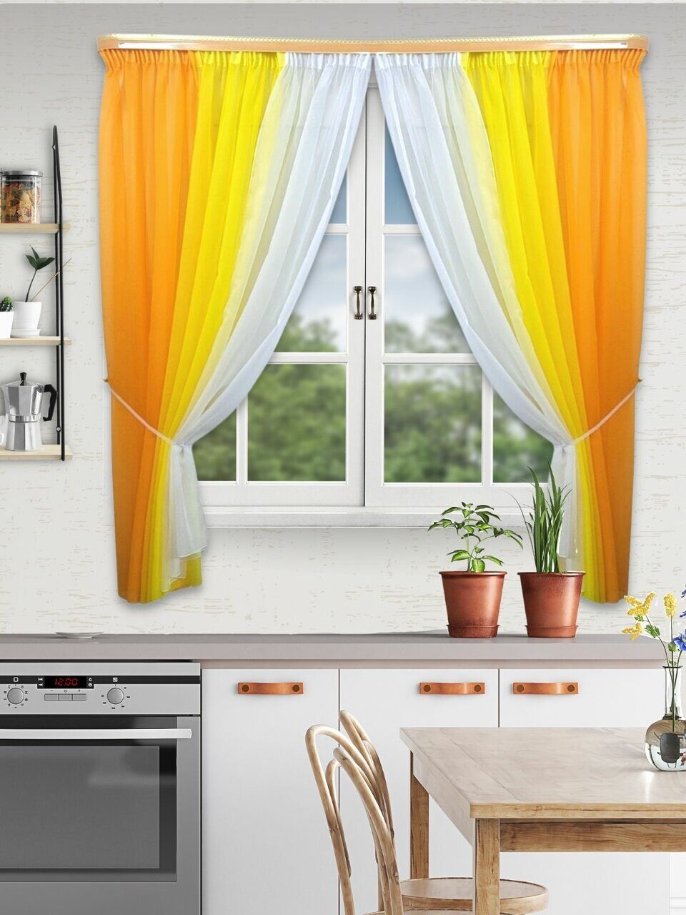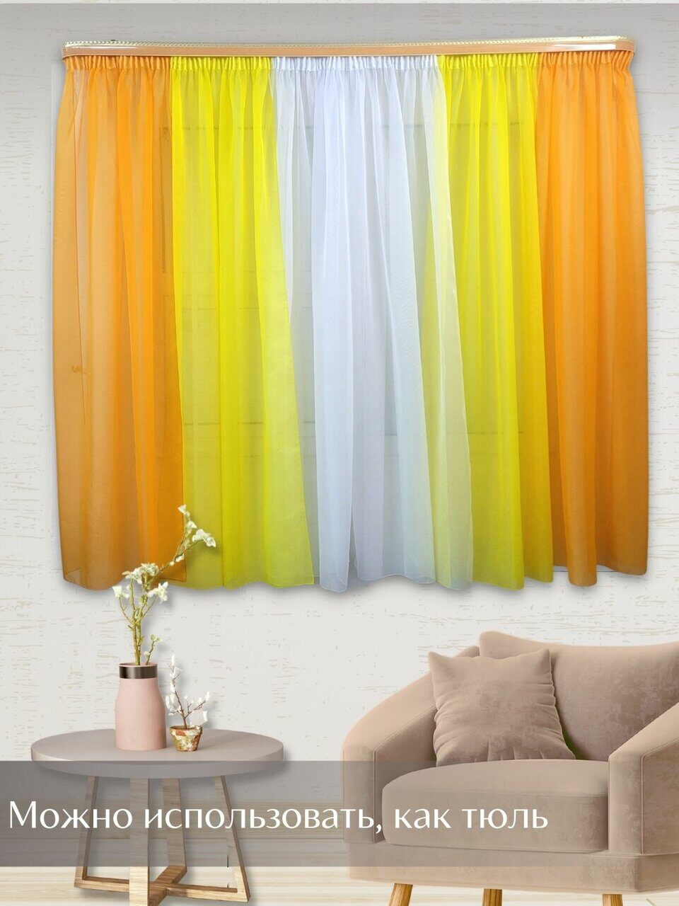 Кухонный комплект из мягкой однотонной вуали, скомбинированный из трех цветов.