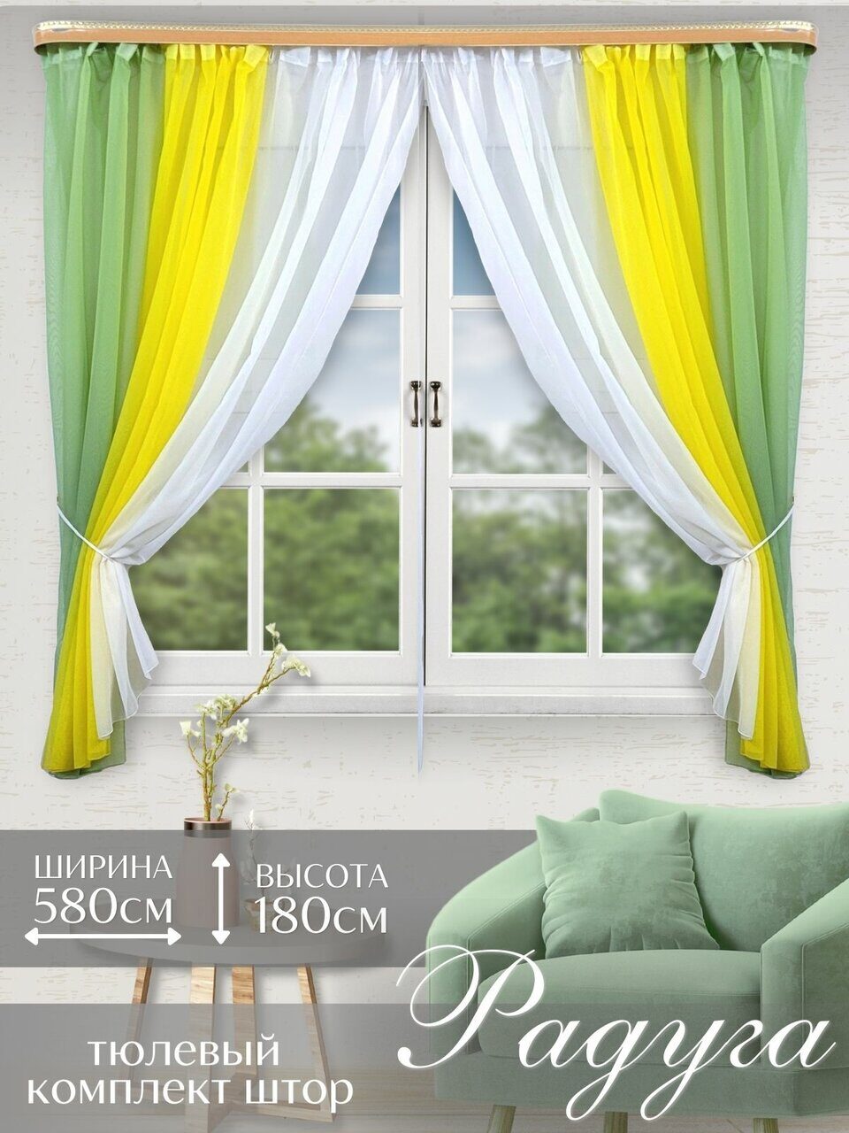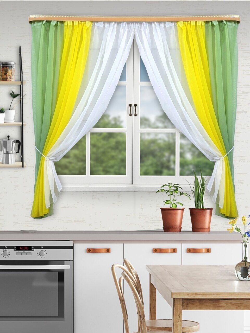 Кухонный комплект из мягкой однотонной вуали, скомбинированный из трех цветов.