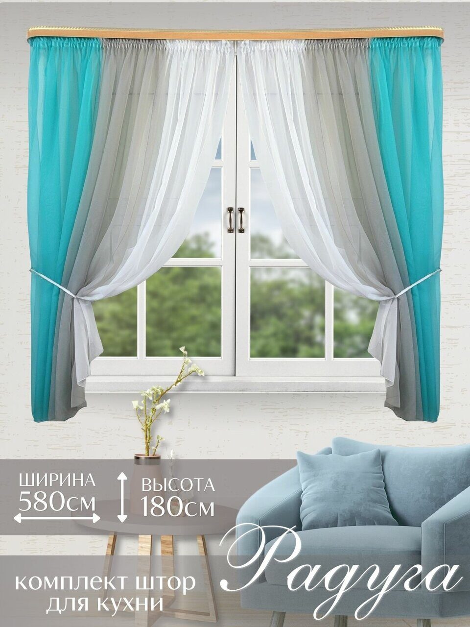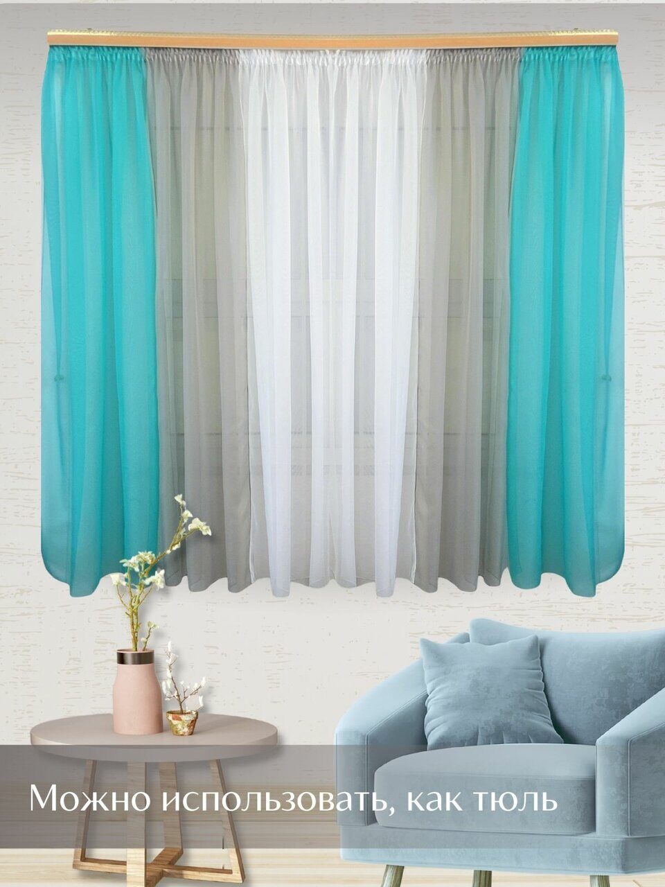Кухонный комплект из мягкой однотонной вуали, скомбинированный из трех цветов.
