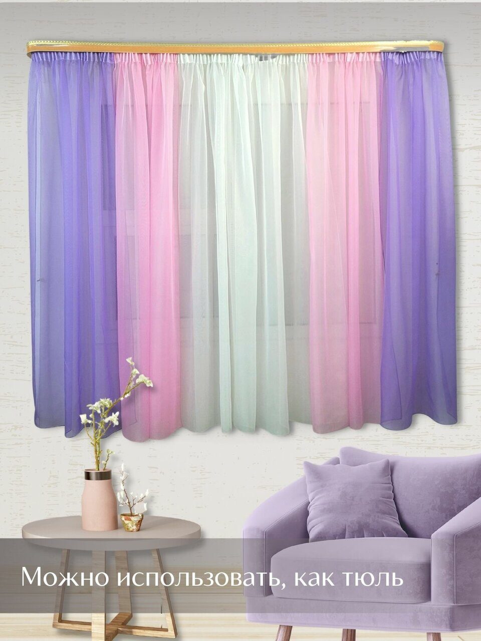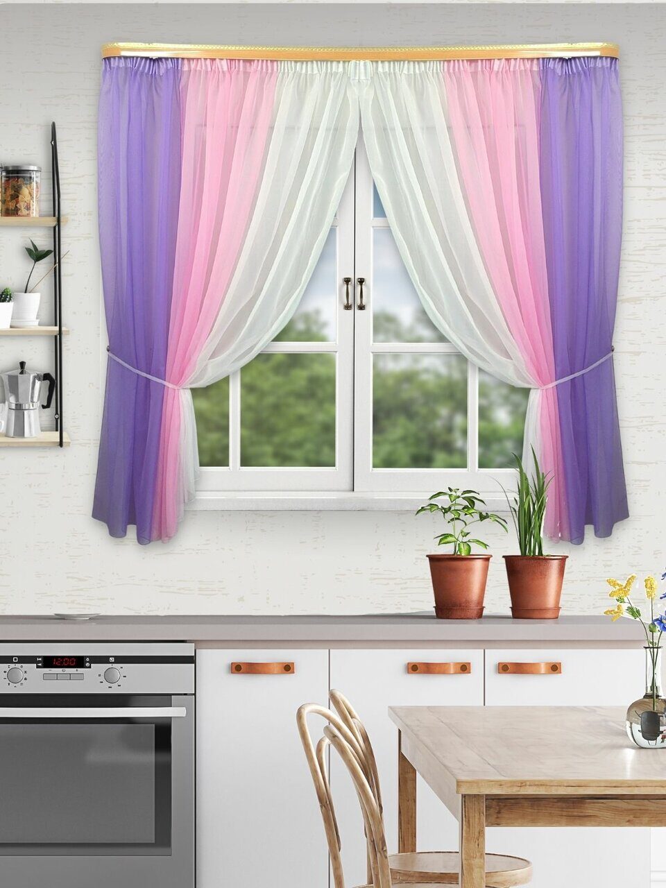 Кухонный комплект из мягкой однотонной вуали, скомбинированный из трех цветов.