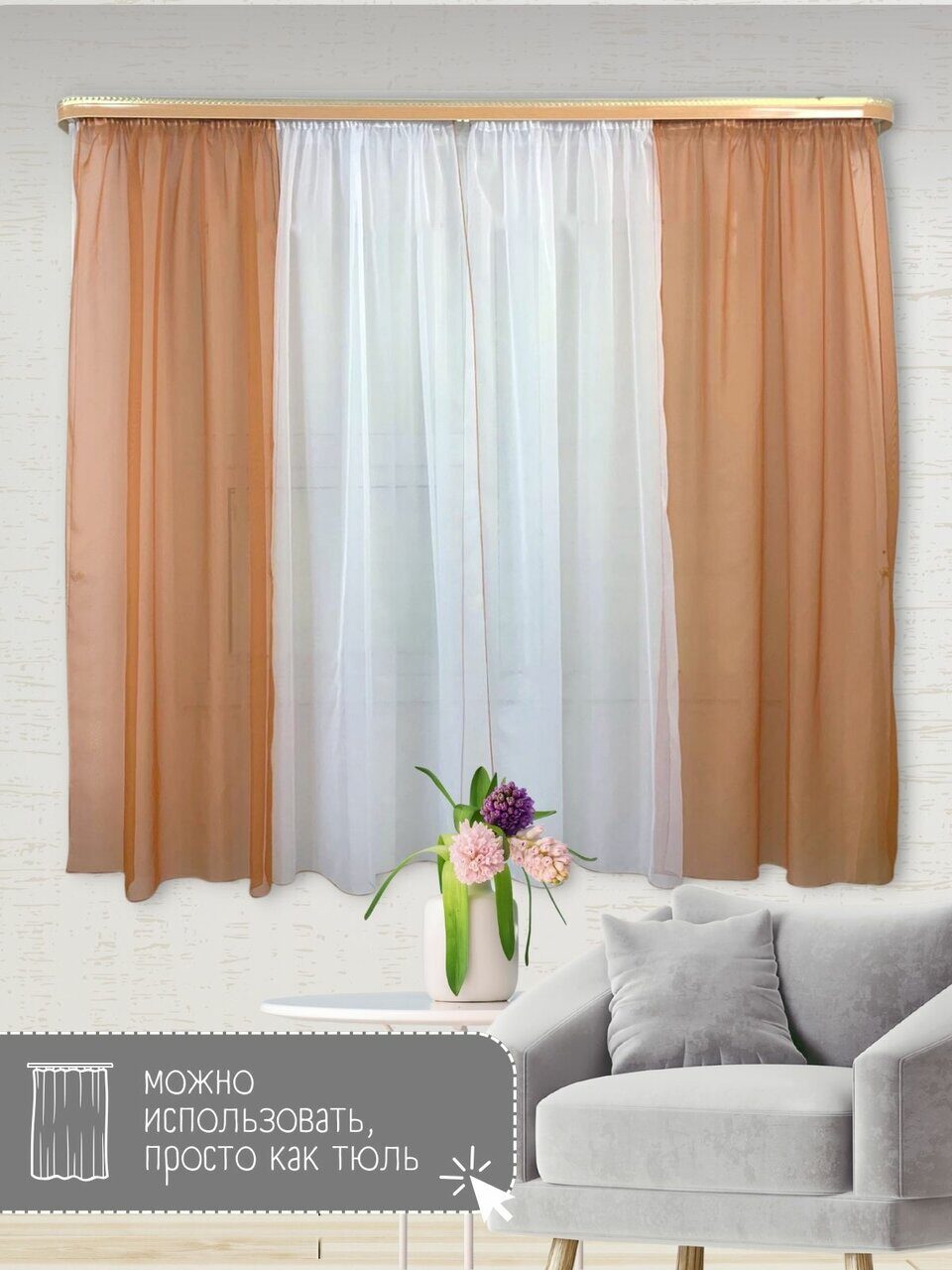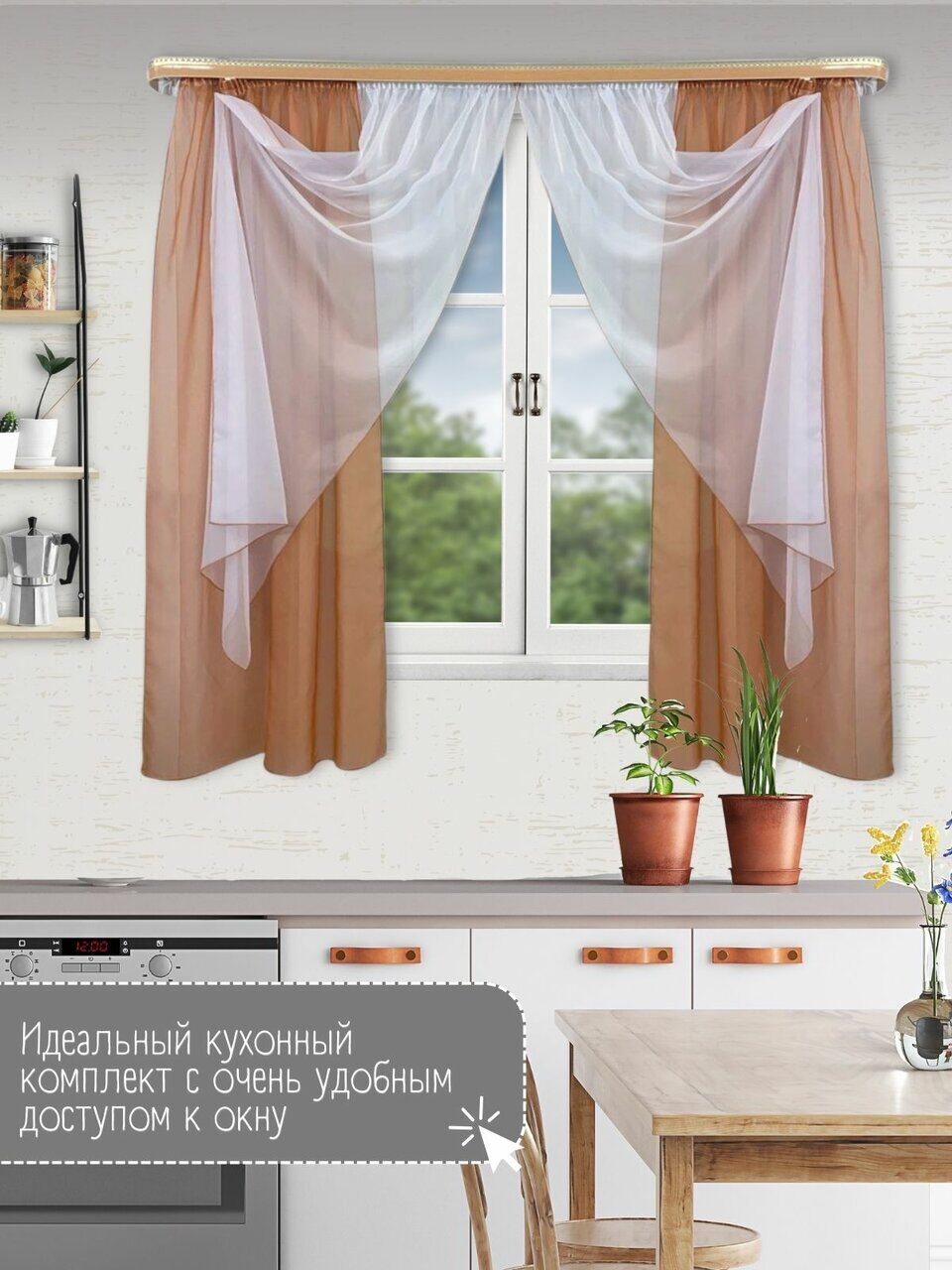 Кухонный комплект из мягкой однотонной вуали, скомбинированный из трех цветов.
