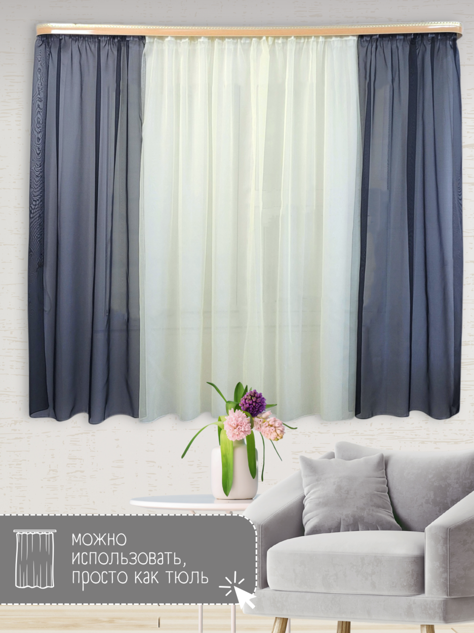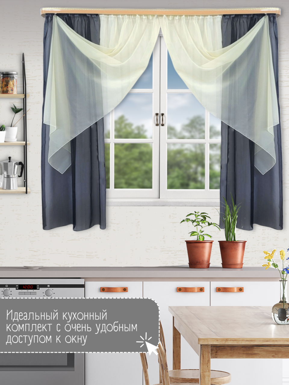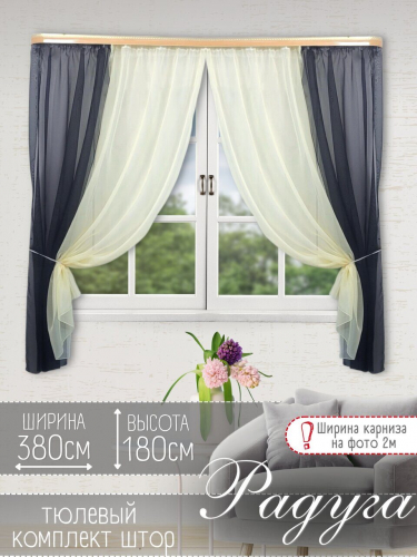 Кухонный комплект из мягкой однотонной вуали, скомбинированный из трех цветов.