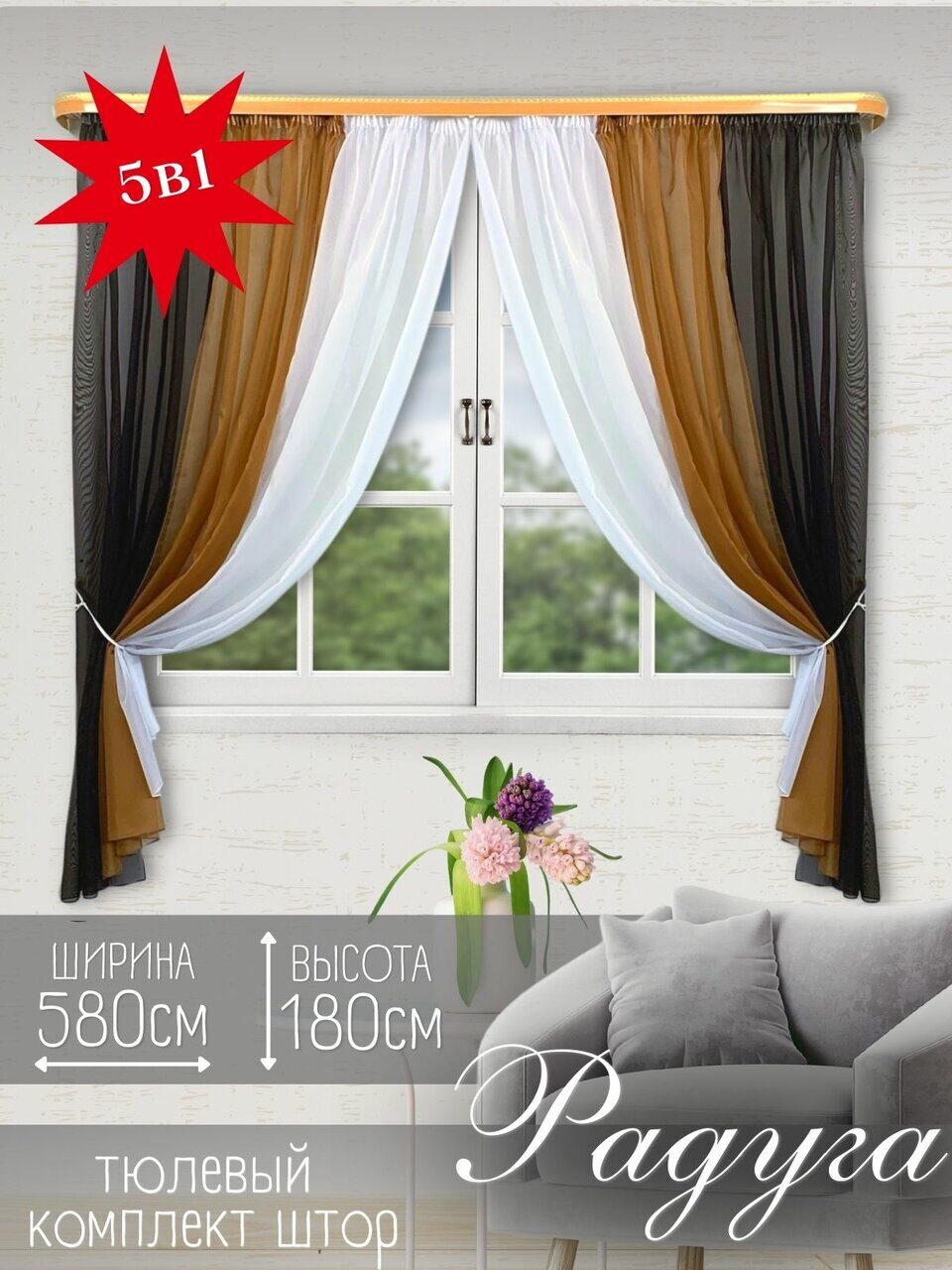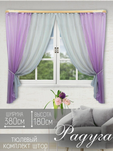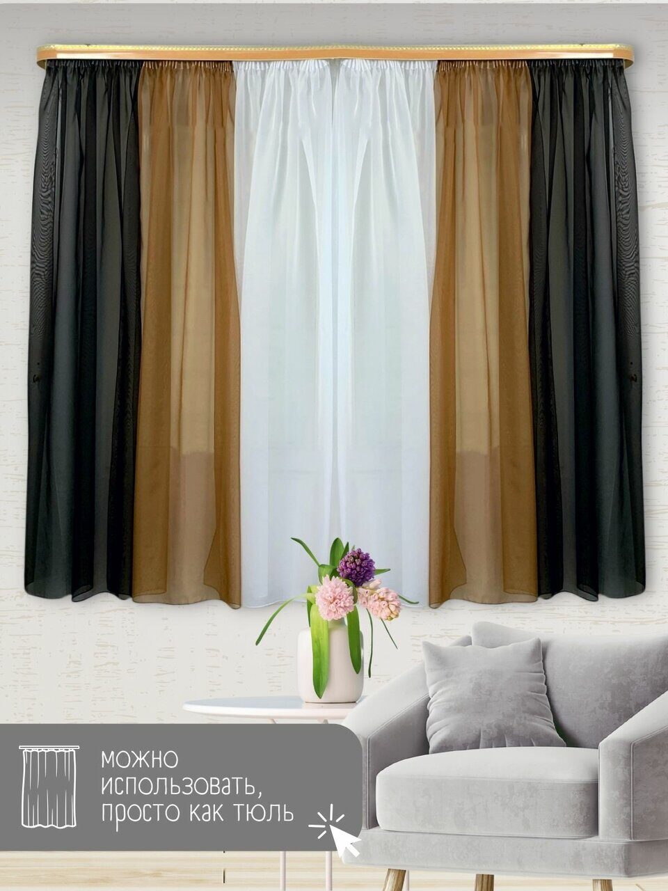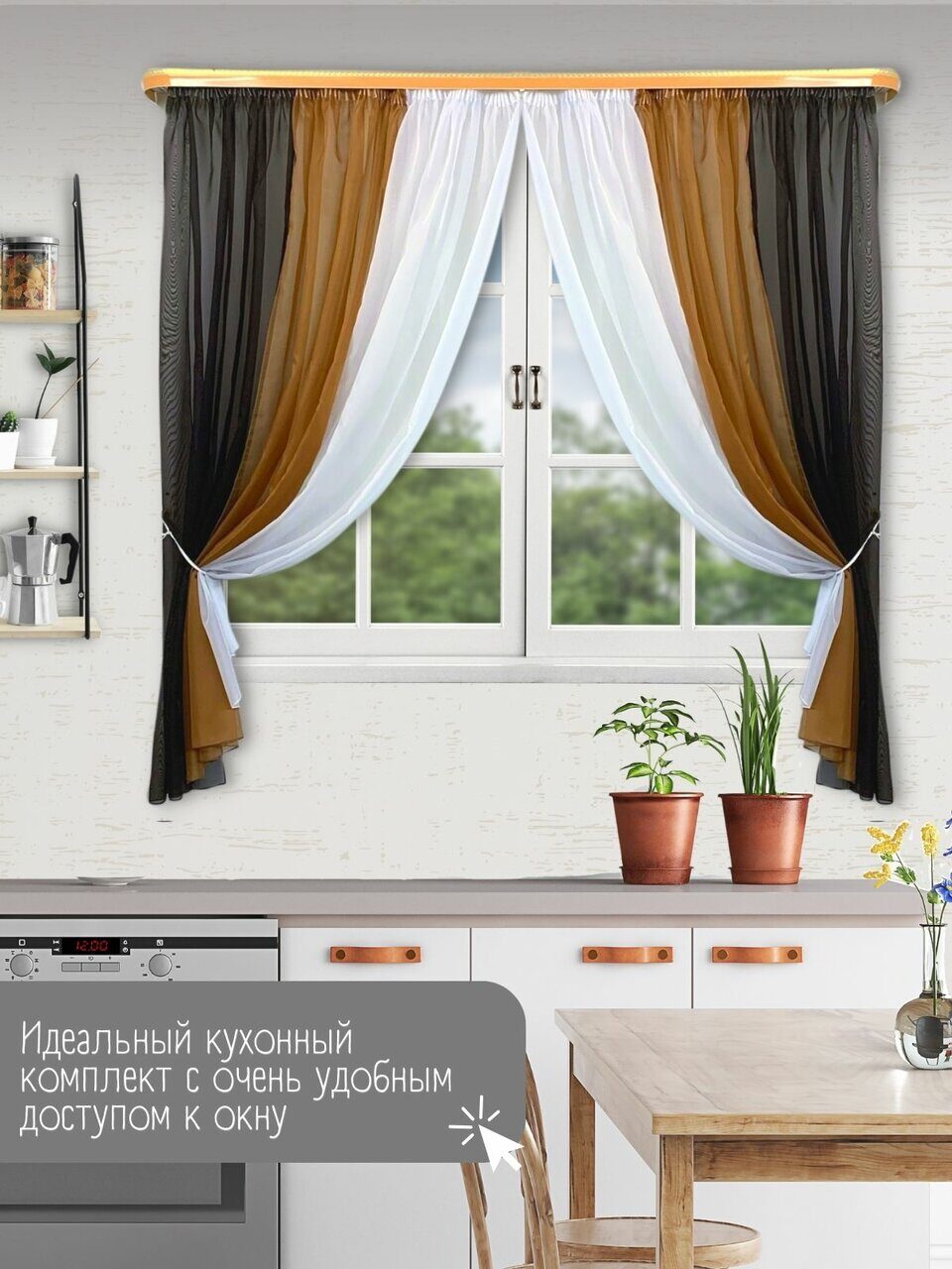 Кухонный комплект из мягкой однотонной вуали, скомбинированный из трех цветов.