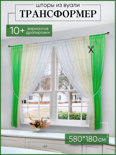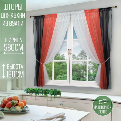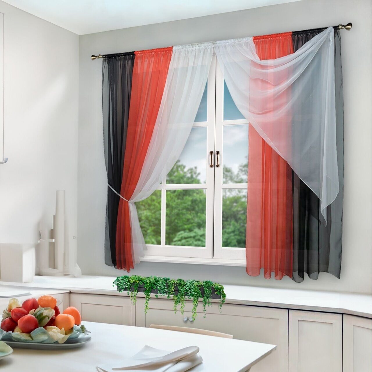 Кухонный комплект из мягкой однотонной вуали, скомбинированный из трех цветов.