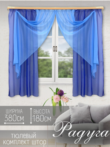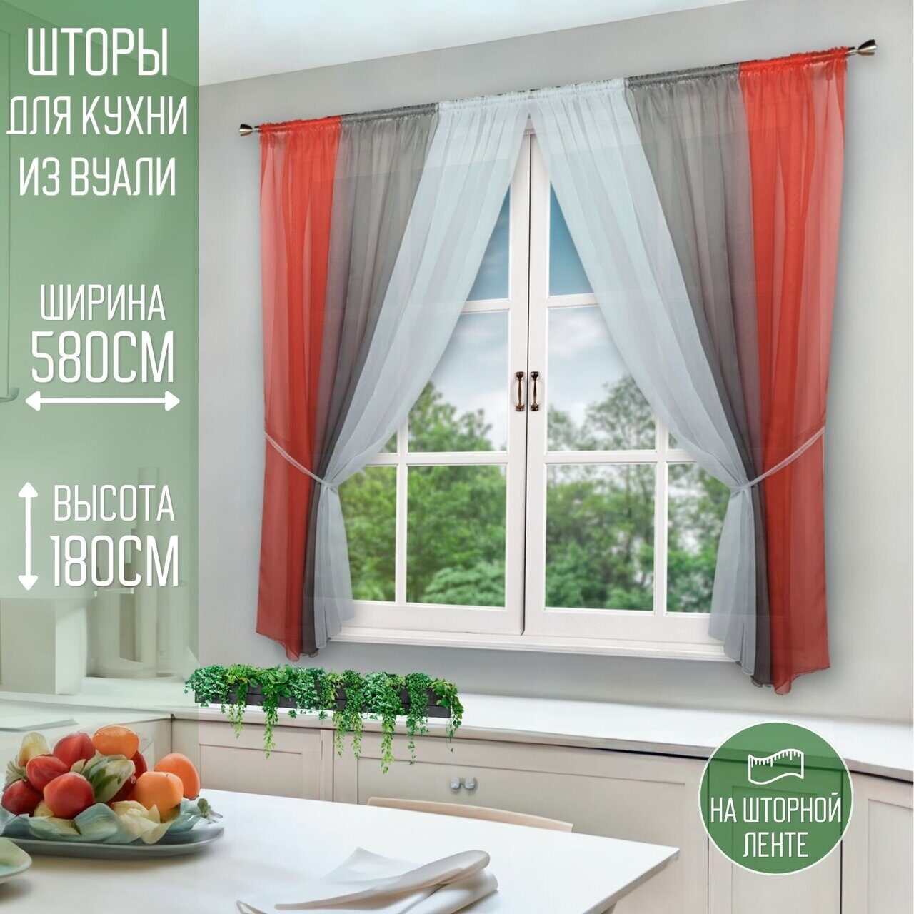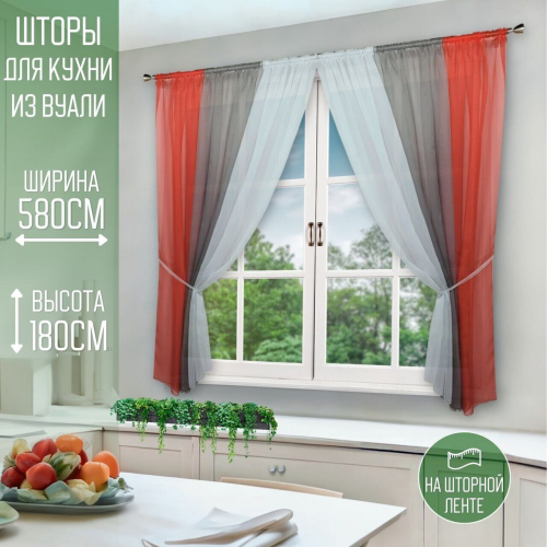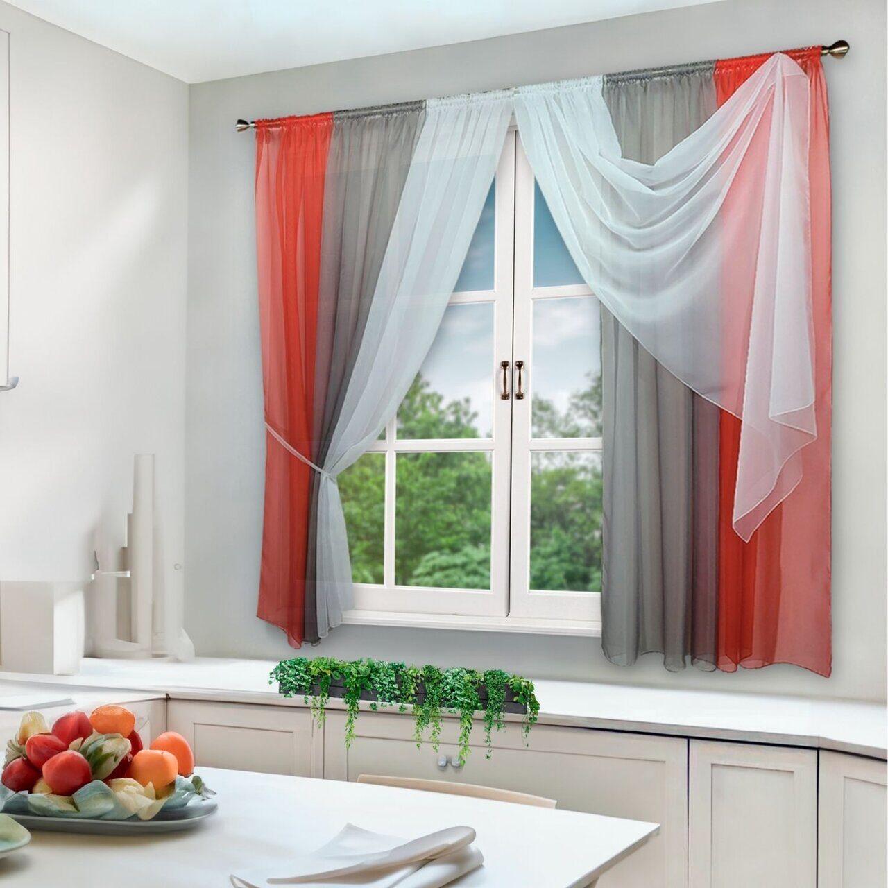 Кухонный комплект из мягкой однотонной вуали, скомбинированный из трех цветов.