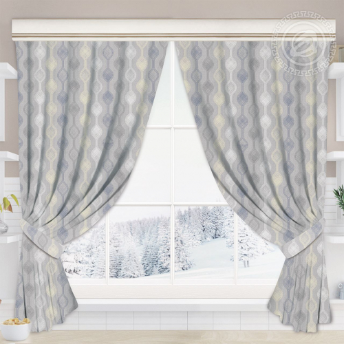 В комплект входят 2 шторы со шторной лентой с размерами 145*180 см в модных расцветках и 2 подхвата, которые позволяют удобно и красиво зафиксировать шторы на окнах.