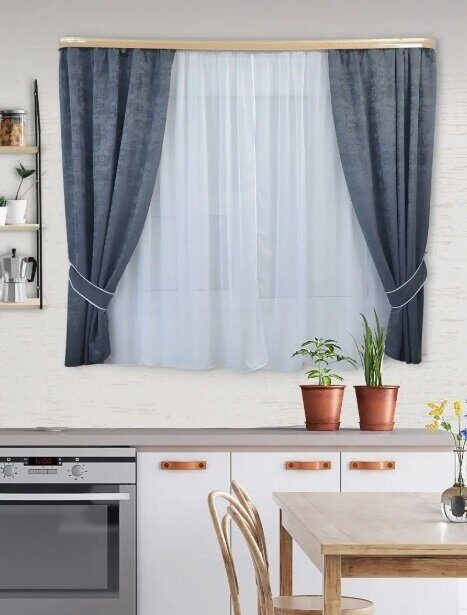 Классический, стильный комплект для кухни. Плотная, портьерная ткань жаккард относительно легкая и мягкая, приятная на ощупь, красиво драпируется и хорошо держит форму.