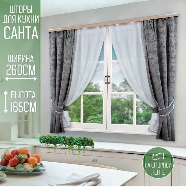 Классический, стильный комплект для кухни. Плотная, портьерная ткань жаккард относительно легкая и мягкая, приятная на ощупь, красиво драпируется и хорошо держит форму.