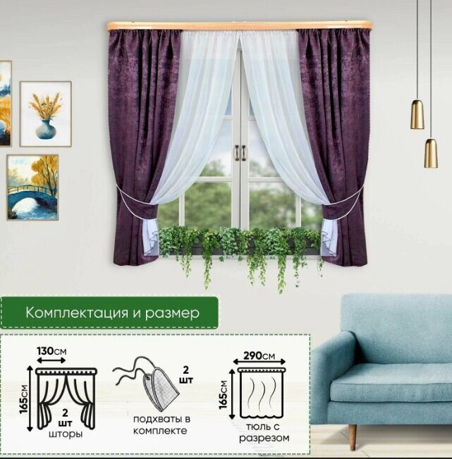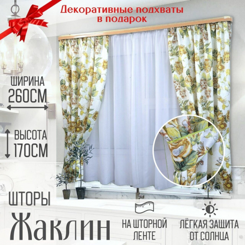 Классический, стильный комплект для кухни. Плотная, портьерная ткань жаккард относительно легкая и мягкая, приятная на ощупь, красиво драпируется и хорошо держит форму.