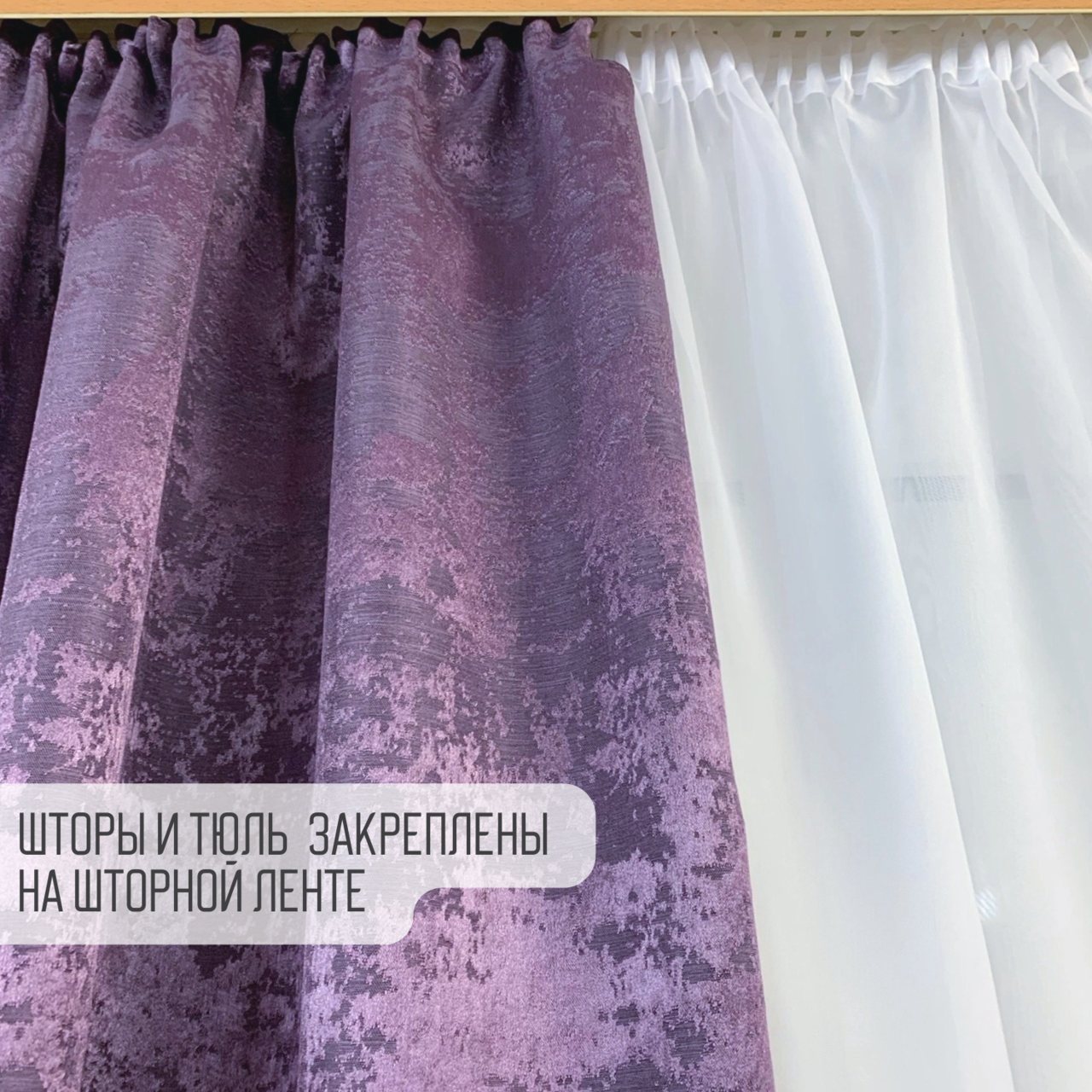 Тип крепления - шторная лента, стягивая которую, создаются качественные и аккуратные складки. Подойдет для любого вида карниза с крючками и зажимами.