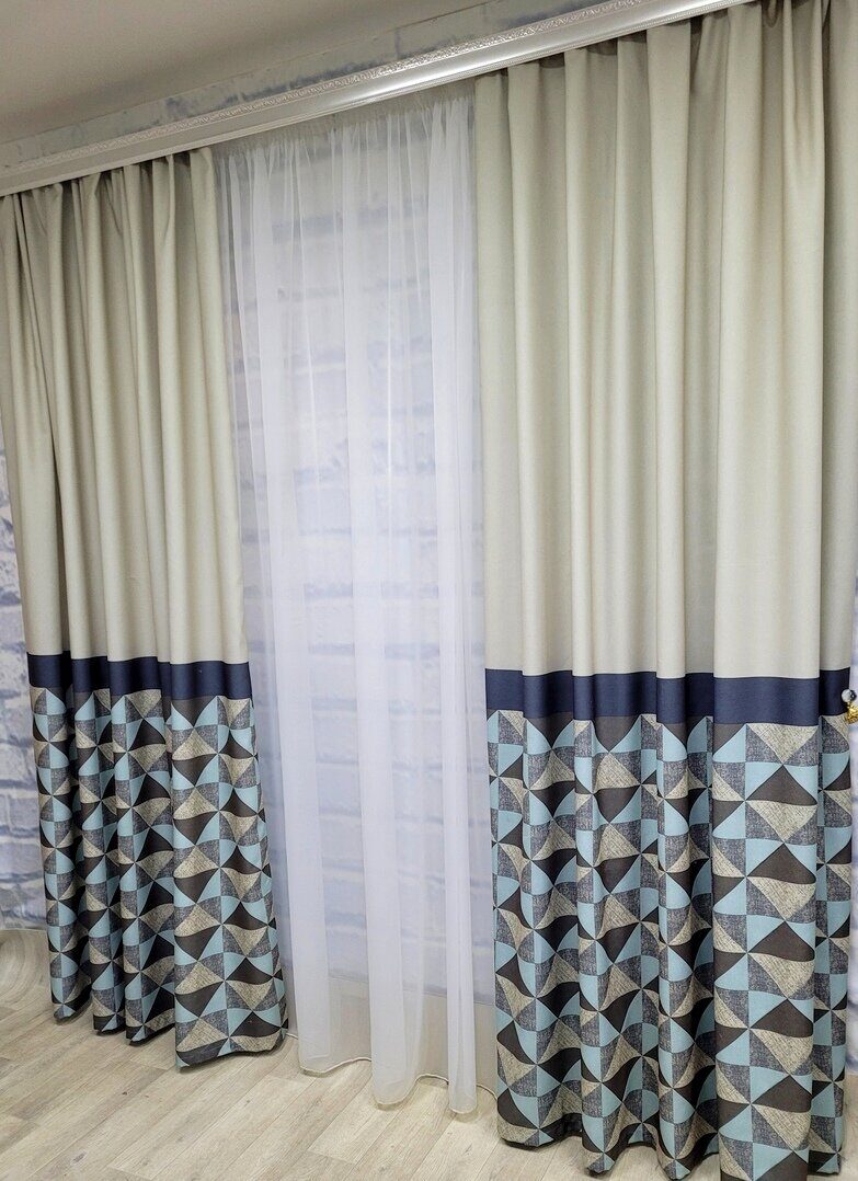 Сочетание однотонного полотна и геометрического рисунка - стильное решение для современного интерьера!