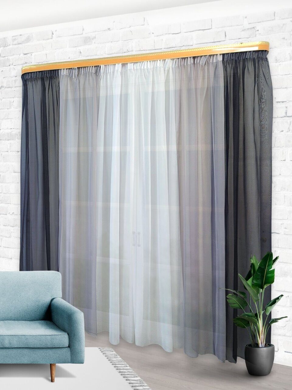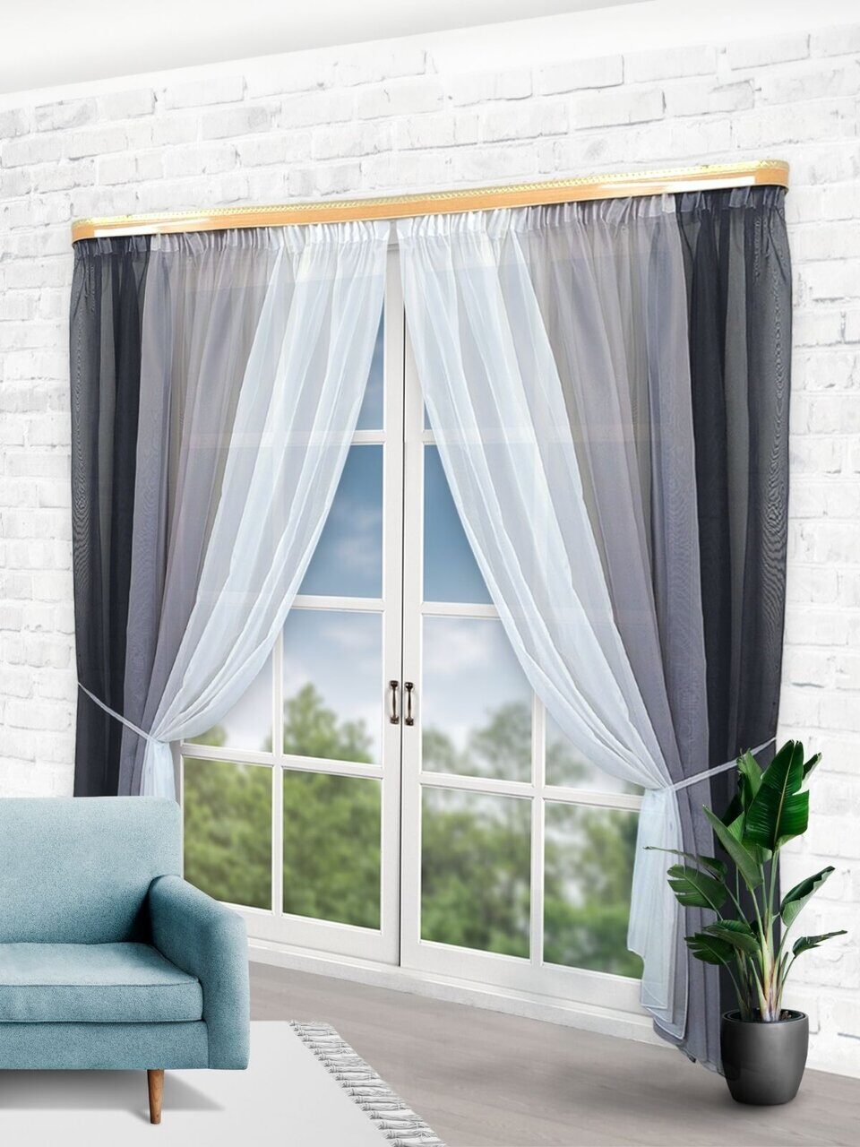 Шторы для комнаты комплект тюль вуаль "Радуга" черный/серый