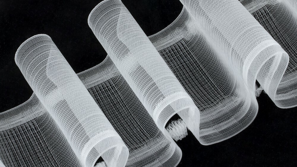 Тесьма шторная №1088-О эффект люверсов/с петлей на трубу из лески/3 ряда кармашк.,2 нити 10 см