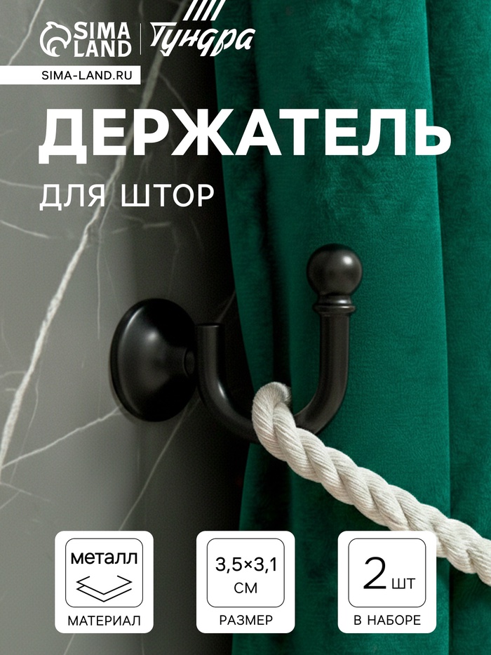 Держатель для штор «ТУНДРА» KS003, однорожковый, черный, 2 шт.