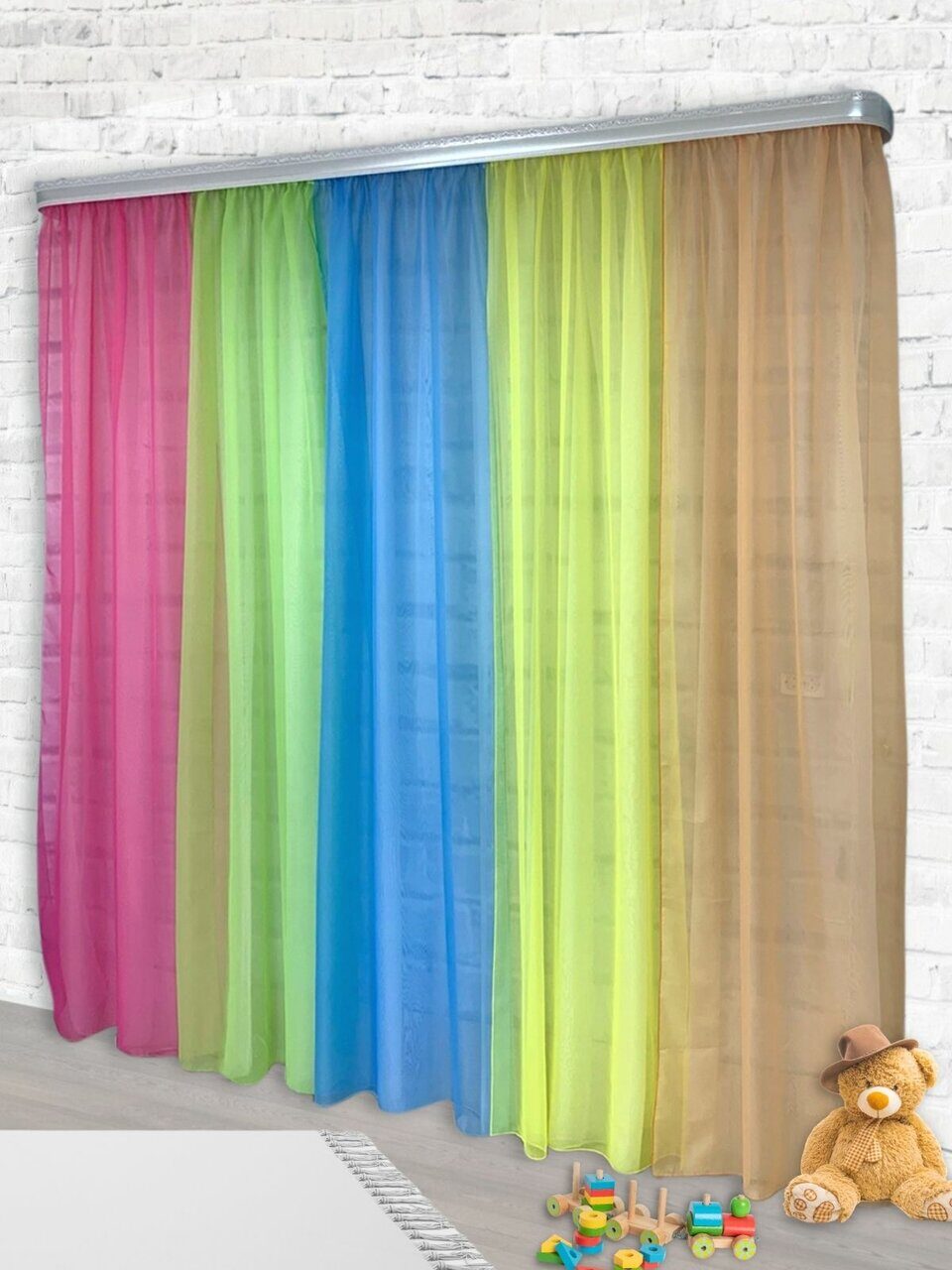 Тюль для зала из мягкой однотонной вуали, скомбинированный из трех цветов.