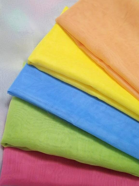 Тюль для зала из мягкой однотонной вуали, скомбинированный из трех цветов.