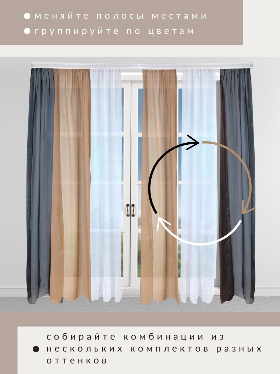 Цветная тюль – прекрасный выбор, чтобы создать уютную атмосферу в квартире, на балконе или на даче. Выполнены из легкой красивой вуали разных оттенков. Комплект состоит из шести разноцветных полос, которые не скреплены между собой. Благодаря такой конструкции доступ к окну становится простым и удобным, а стягивая тесьму до нужной длины легко получить нужный размер штор. Стоит отметить, что тонкая тюлевая вуаль прекрасно рассеивает солнечный свет. Высота 250 см оптимальна не только для кухонных или дачных помещений, но и для веранды. Комбинированная расцветка хорошо смотрится в детской. Универсальный дизайн подходит подросткам и детям: как мальчикам, так и девочкам. Декоративные занавески отлично впишутся в интерьер кухни, гостиной или спальни и являются отличным вариантом, чтобы освежить оформление вашего дома!