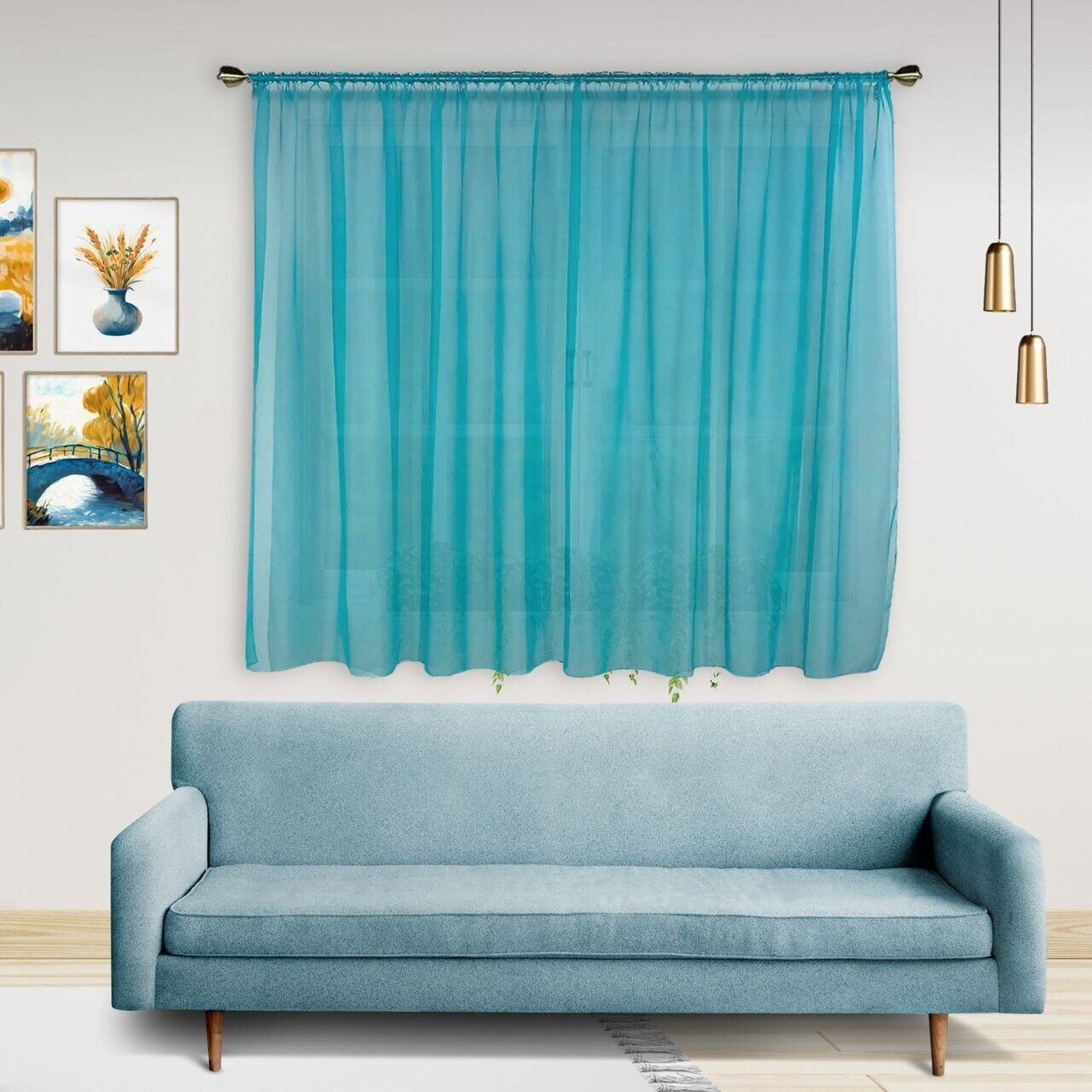 Тюль на кухню короткая вуаль 300*180см, бирюзовый