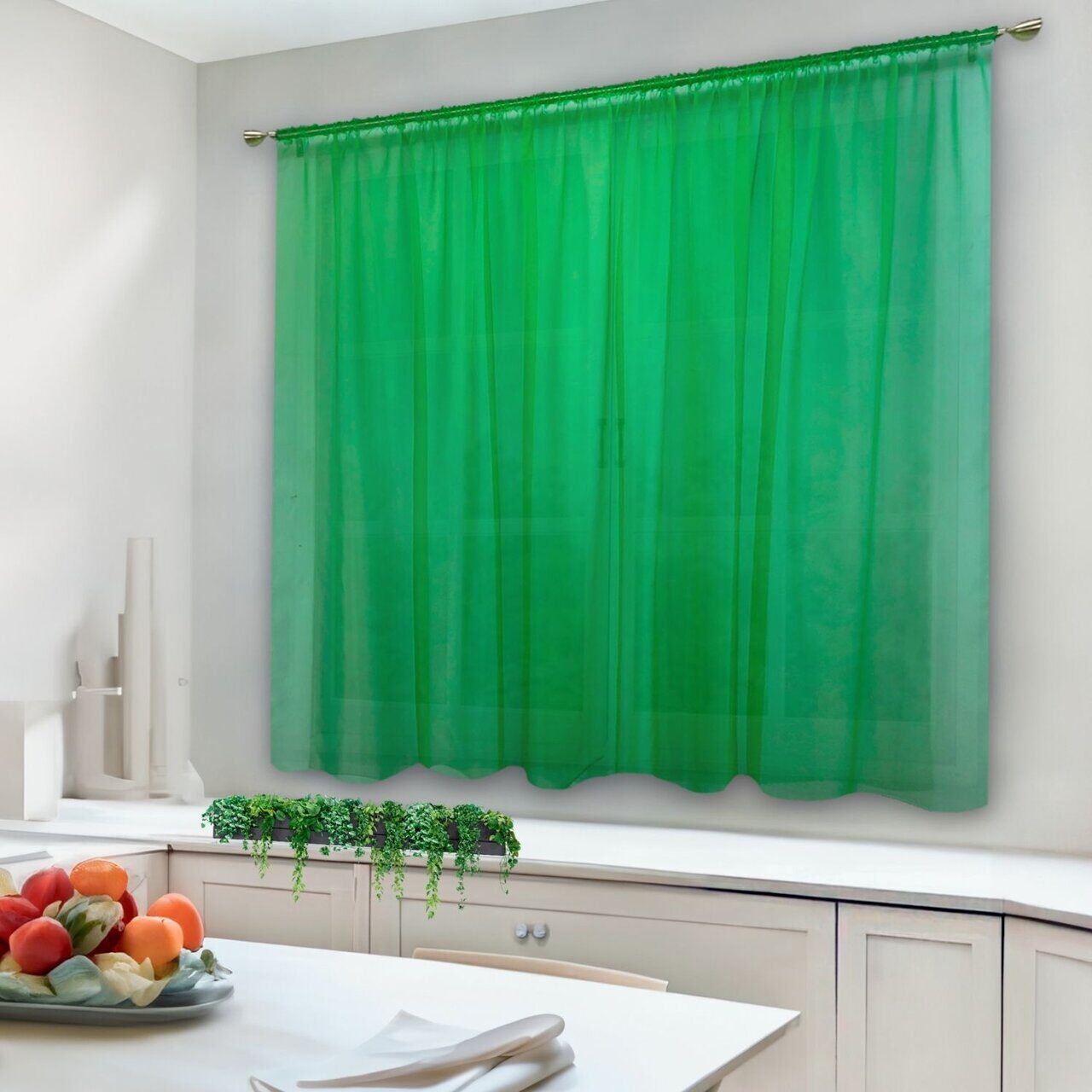 Тюль на кухню короткая вуаль 300*180см, зеленый